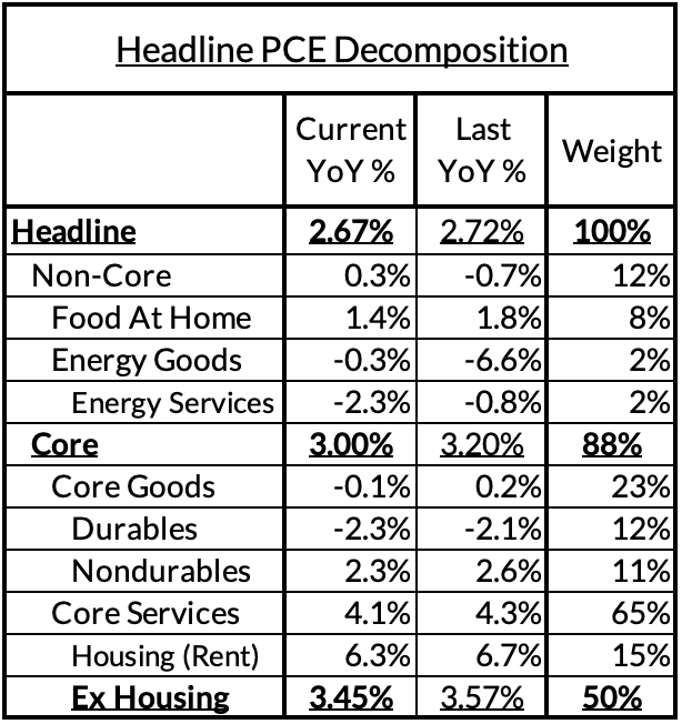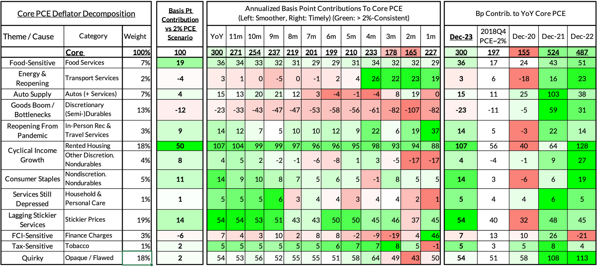 The December growth rate in "Core Services Ex Housing" ('supercore') PCE ran at 3.45% year-over-year, an 86 basis point overshoot versus the ~2.59% run rate that coincided with ~2% headline and core PCE.