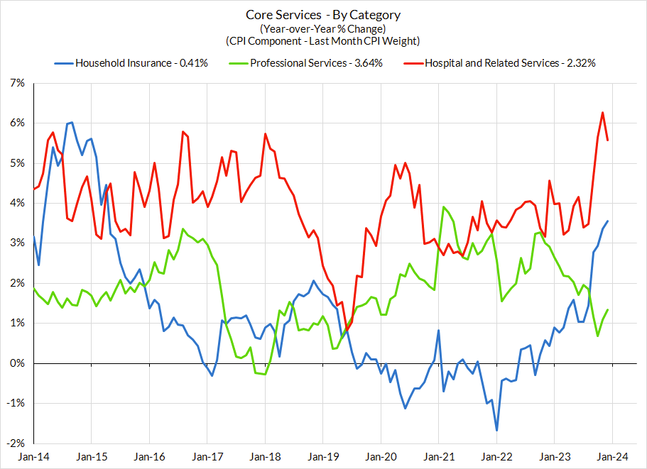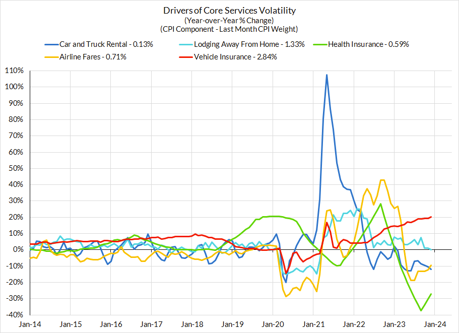 Core Services CPI Components (Not All Feed Into Core PCE)