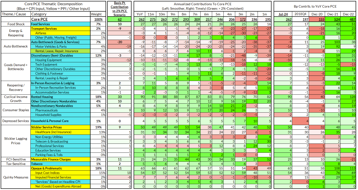 The final heatmap below gives you a sense of the overshoot on shorter annualized run-rates. July monthly annualized Core PCE ran at a 1.95% annualized pace, a 5 basis point undershoot vs 2% target inflation.