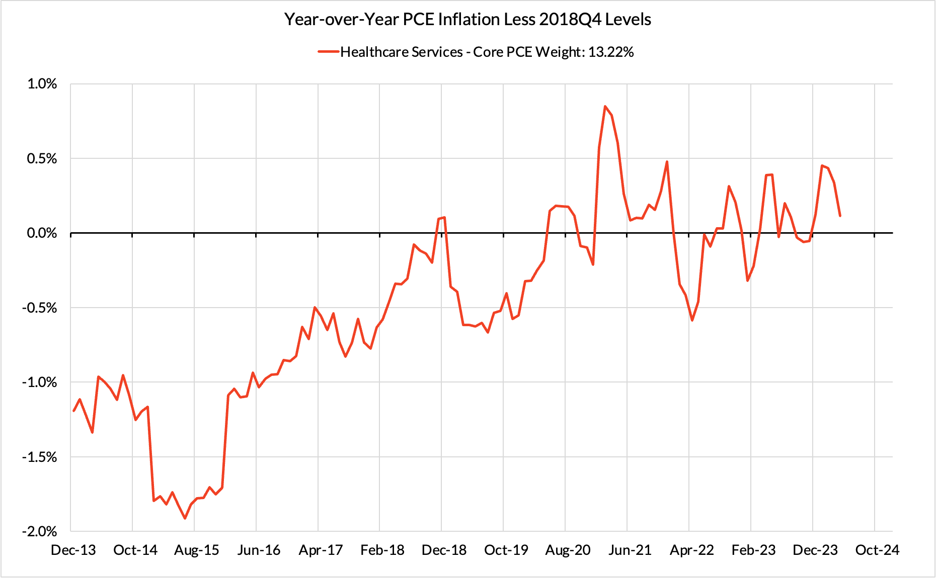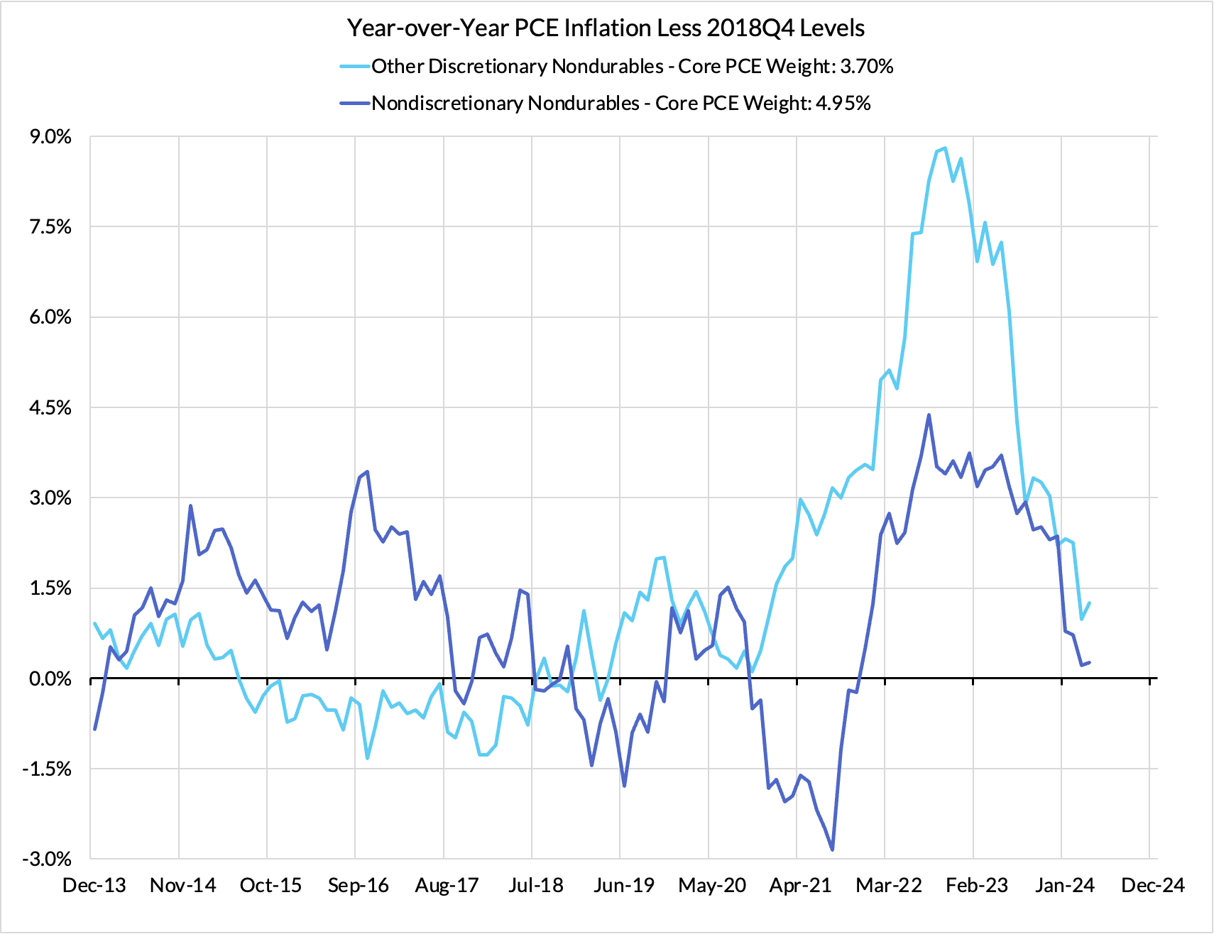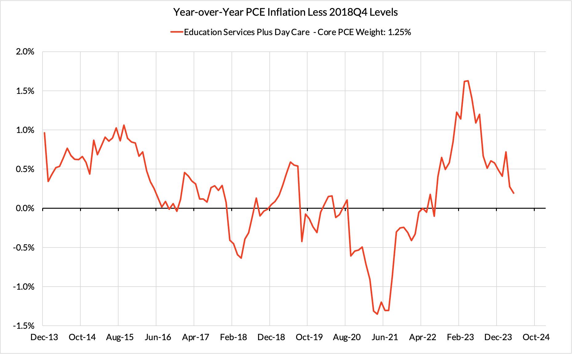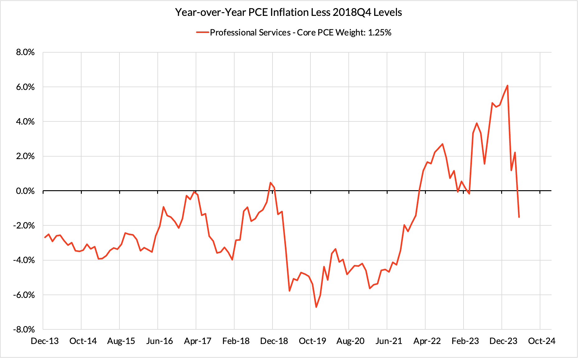 There are other segments of PCE inflation that have run strong to start 2024, particularly within goods. Apparel inflation has run strong, though the highly seasonal nature of apparel pricing also drives much of its local volatility month to month and quarter to quarter. Information technology goods prices were rapidly deflating in the final two quarters of last year but the end of aggressive discounting has translated into stronger inflation in Q1. Overall, core goods pricing has ran at a satisfactory pace for Core PCE to hit 2%, provided that core services pricing show more signs of normalization.