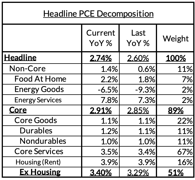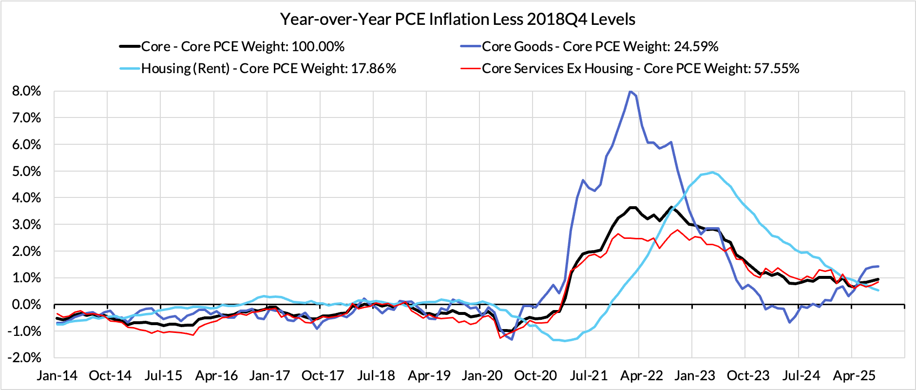 - Catch-up rent CPI inflation in response to the 2021-22 surge in household formation (a byproduct of rapidly recovering job growth) and market rents accounts for just 11 basis points to the 91 basis point Core PCE overshoot.