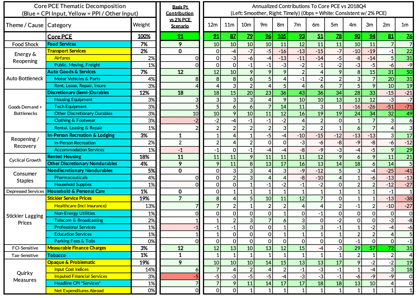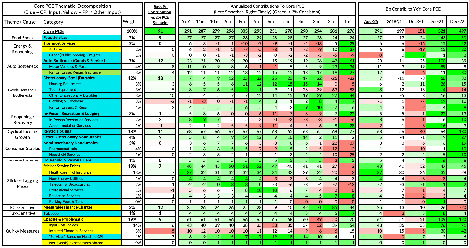 The final heatmap below gives you a sense of the overshoot on shorter annualized run-rates. August monthly annualized Core PCE ran at a 2.76% annualized pace, a 76 basis point overshoot vs 2% target inflation.