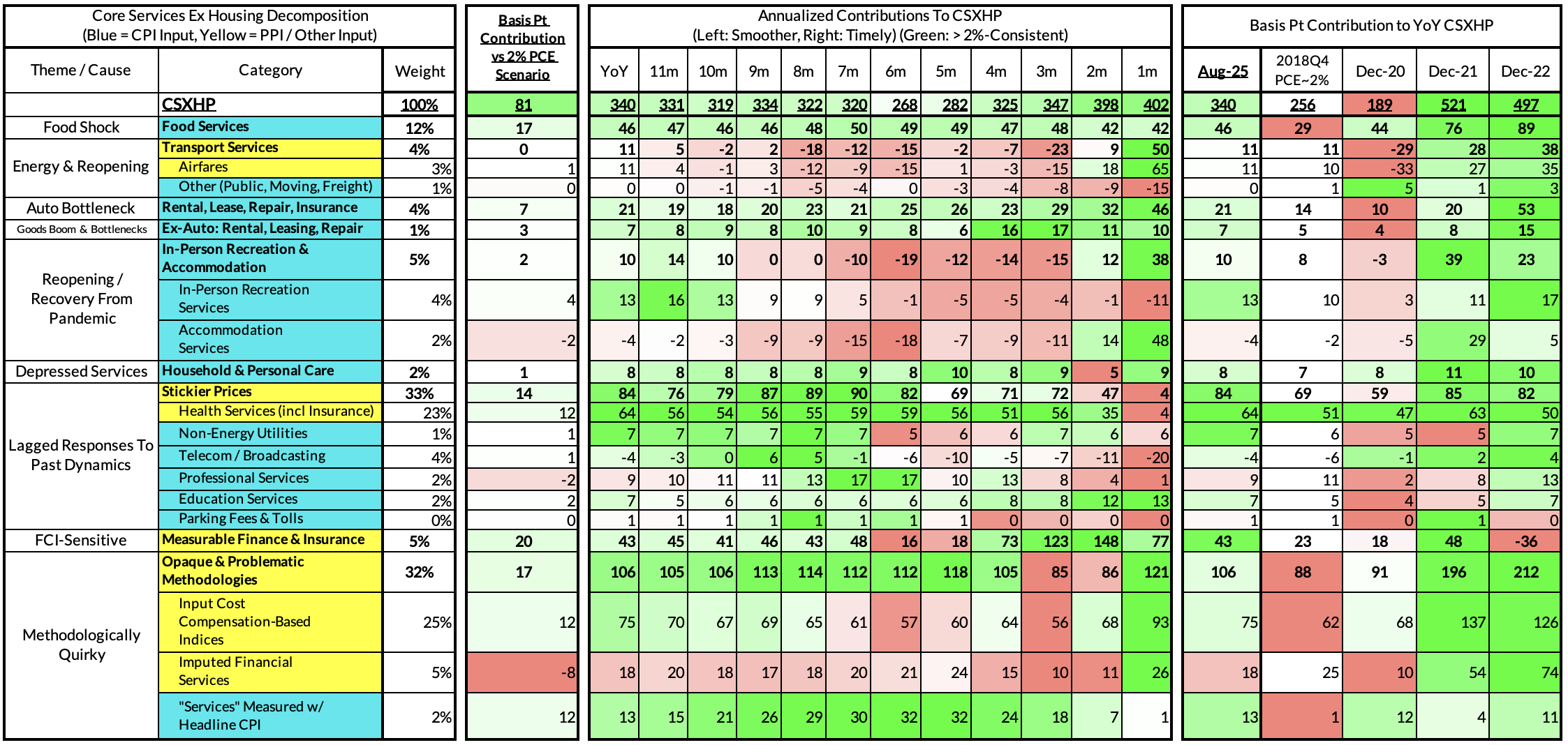 The August growth rate in "Core Services Ex Housing" ('Supercore') PCE ran at a 3.40% year-over-year pace, a 81 basis point overshoot versus the ~2.59% run rate that coincided with ~2% Headline and Core PCE inflation.