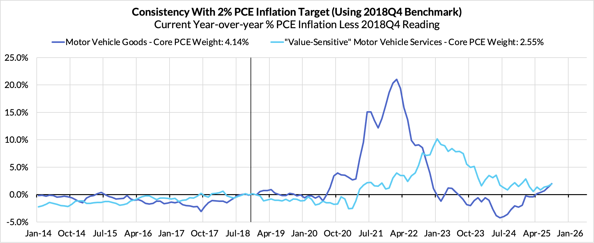 - Discretionary non-automobile goods + adjacent services are adding 27 basis points.