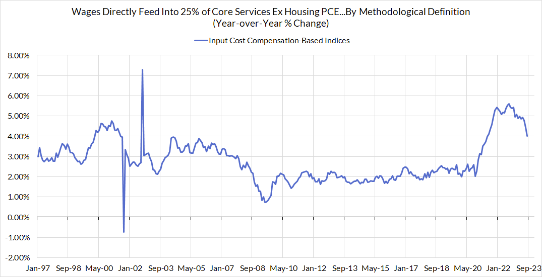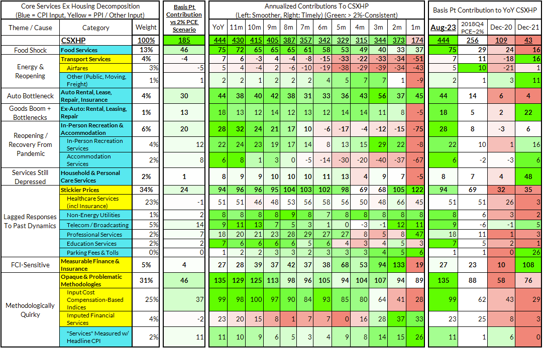 The August growth rate in "Core Services Ex Housing" ('supercore') PCE is on track to run at 4.44% year-over-year, a 185 basis point overshoot versus the 2.68% run rate that coincided with ~2% headline and core PCE.