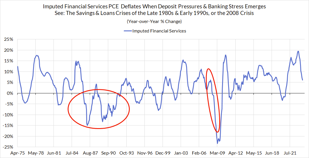 Both of these categories should support further disinflation so long as (1) wages & broad commodity PPIs keep decelerating, and (2) deposit rates show additional convergence to benchmark short-term interest rates (and/or bank lending volumes slow further). We would warn that both of these categories are vulnerable to further revision in the coming months. But given what we know today, the math is definitely getting easier for the Fed to achieve and sustain 2% core PCE outcomes, and comparable supercore PCE outcomes (there's ~0.68% upward bias to supercore categories over core).
