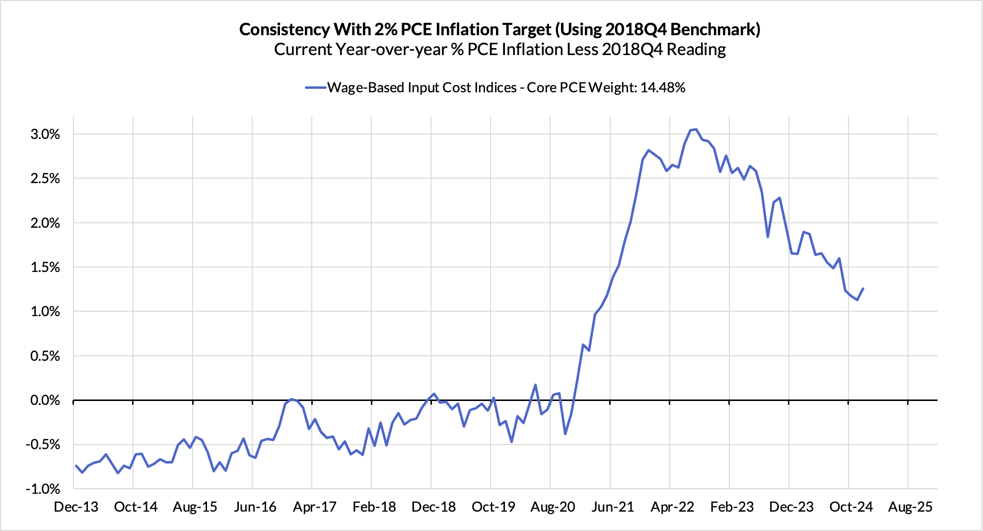 - Contributions from input cost indices (wages in specific sectors where market prices don't exist) are now adding 17 basis points to the overshoot