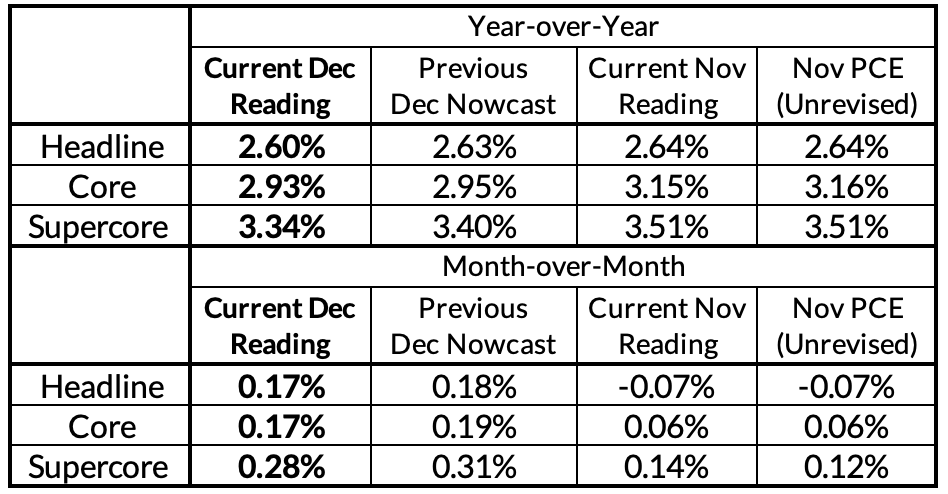 If January and February merely comes in warm (0.25%-0.30%), the base effects and residual seasonality associated with these months can still give the Fed sufficient confidence to begin normalizing interest rates in March. Should Core PCE appear even cooler (anything lower than 2.56% year-over-year on their nowcasts at the FOMC meeting), the case for cutting interest rates in March should be unambiguous.
