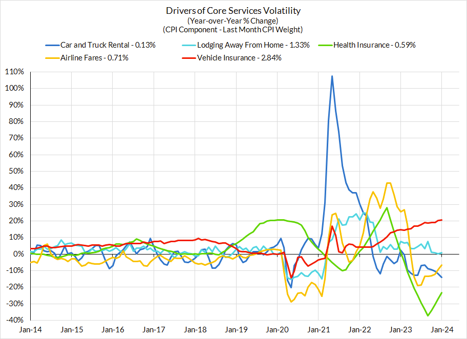 Core Services CPI Components (Not All Feed Into Core PCE)