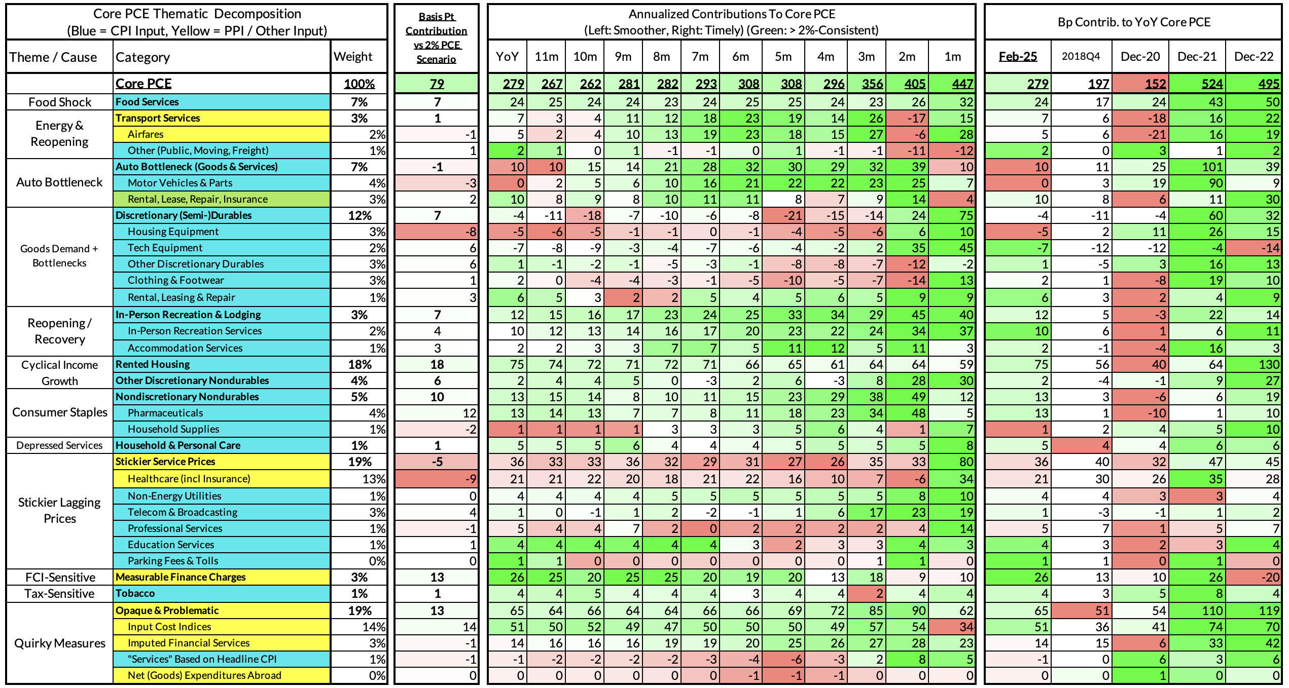 The final heatmap below gives you a sense of the overshoot on shorter annualized run-rates. February monthly annualized Core PCE ran at a 4.47% annualized pace, a 247 basis point overshoot vs 2% target inflation.