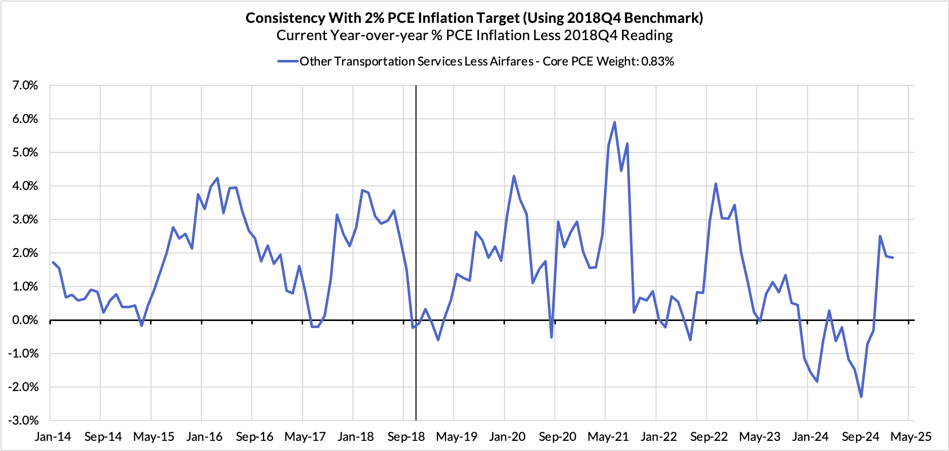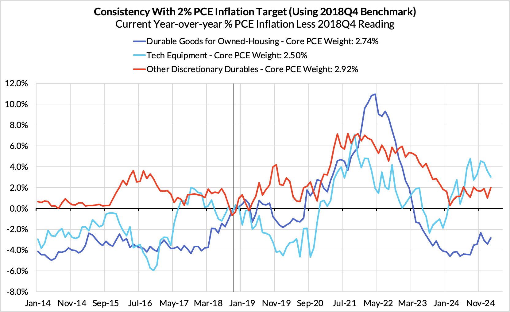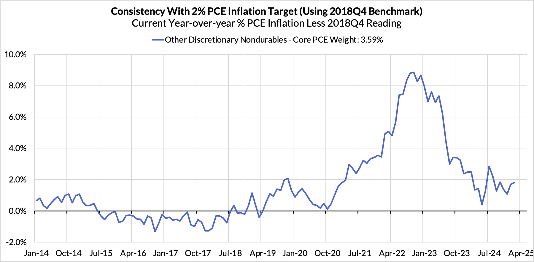 - Discretionary goods and adjacent services are adding 13 basis points