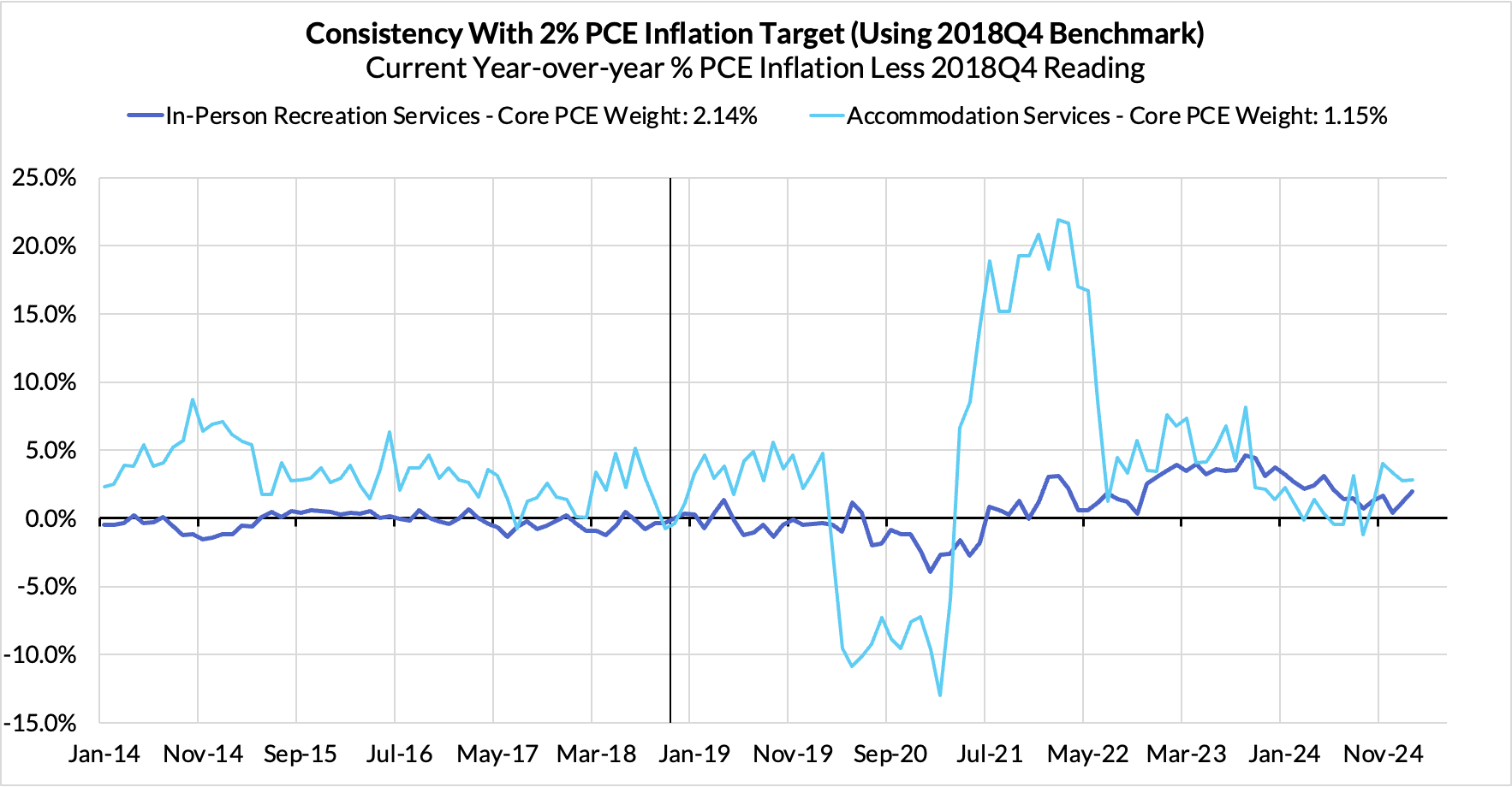 - In-person recreation and lodging services are contributing 7 basis points