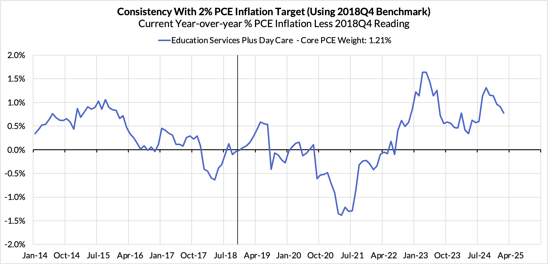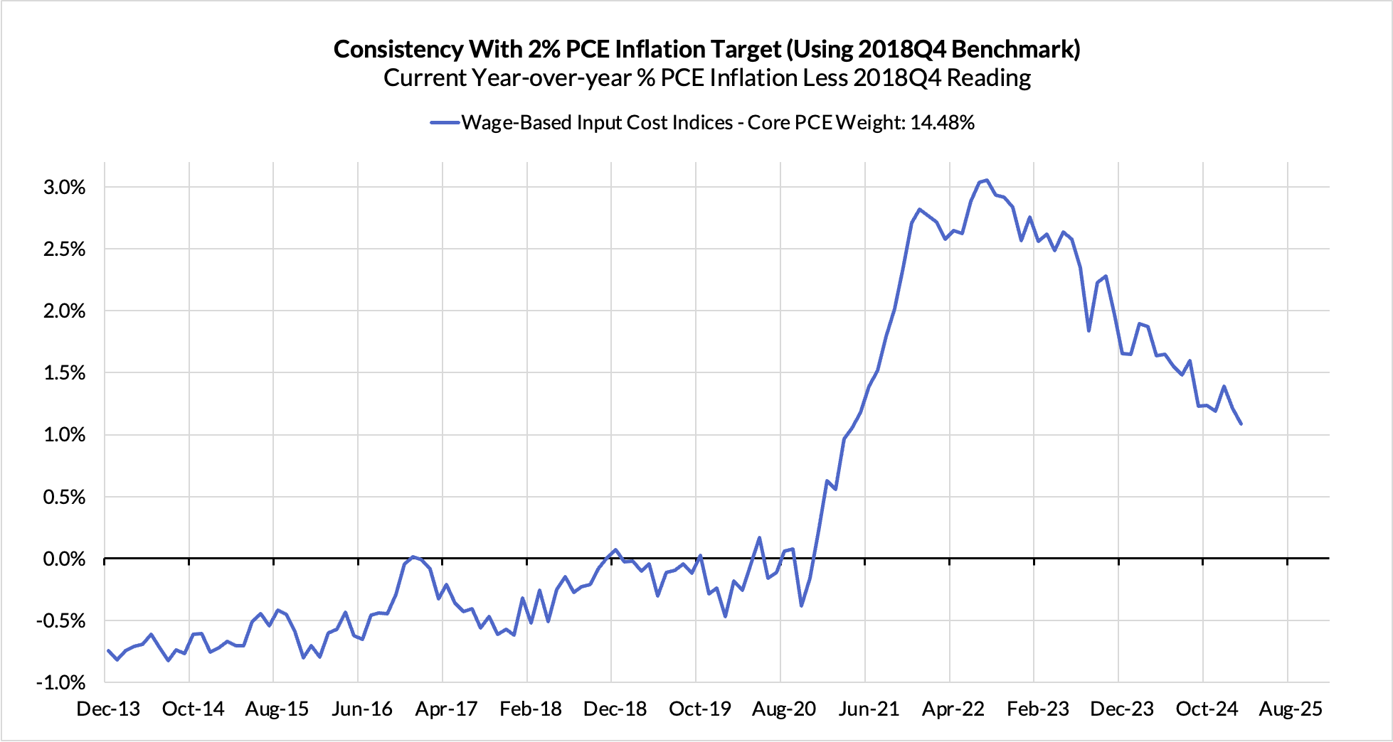 - Contributions from input cost indices (wages in specific sectors where market prices don't exist) are now adding 14 basis points to the overshoot