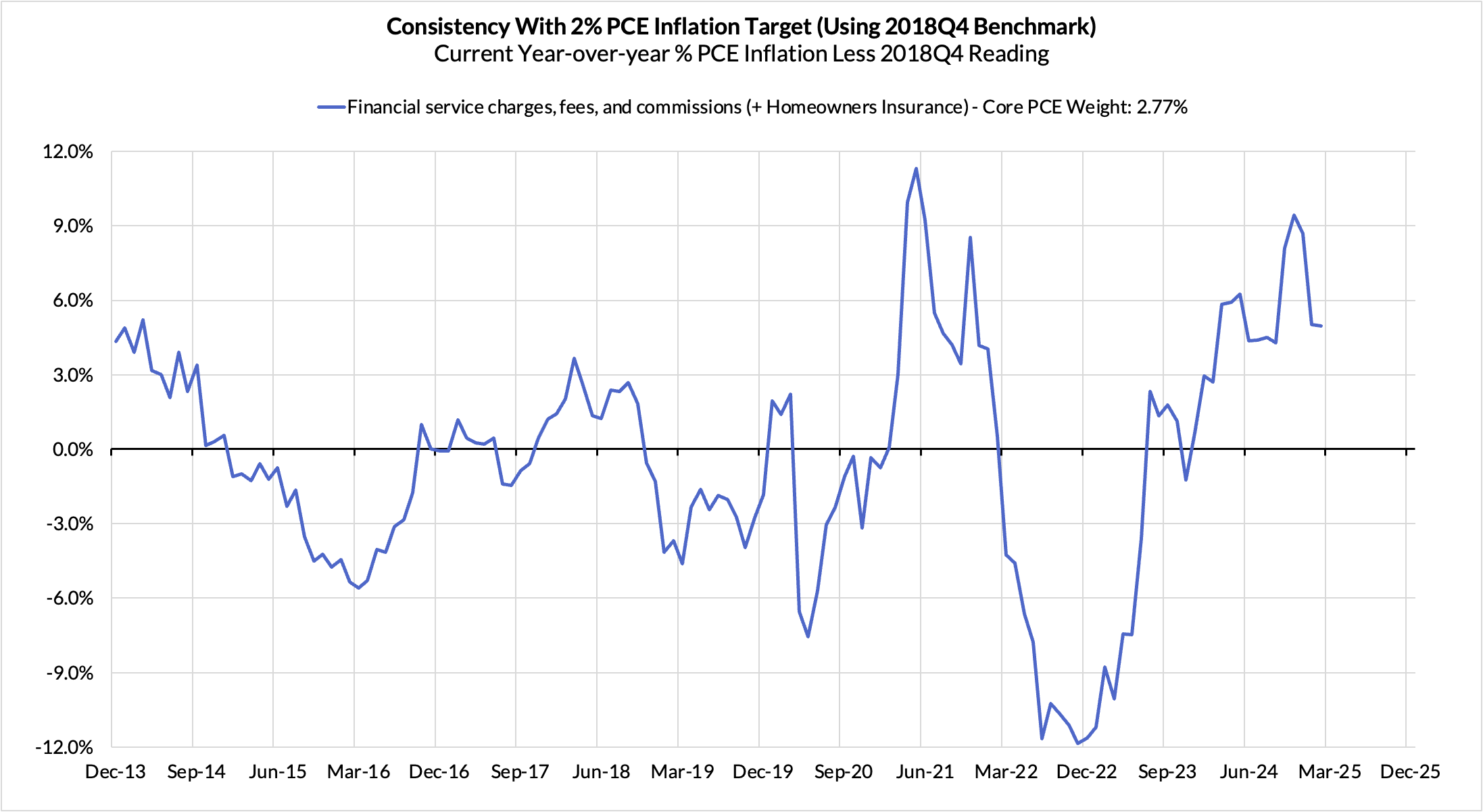 The February growth rate in "Core Services Ex Housing" ('Supercore') PCE is running at a 3.34% year-over-year pace, a 75 basis point overshoot versus the ~2.59% run rate that coincided with ~2% headline and Core PCE.