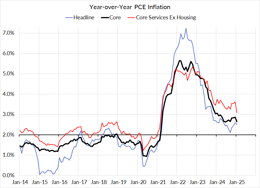 The January growth rate in "Core Services Ex Housing" ('Supercore') PCE ran at a 3.09% year-over-year pace, a 51 basis point overshoot versus the ~2.59% run rate that coincided with ~2% headline and Core PCE.
