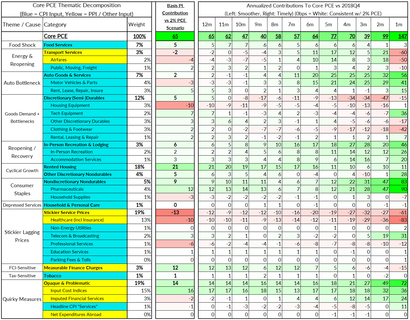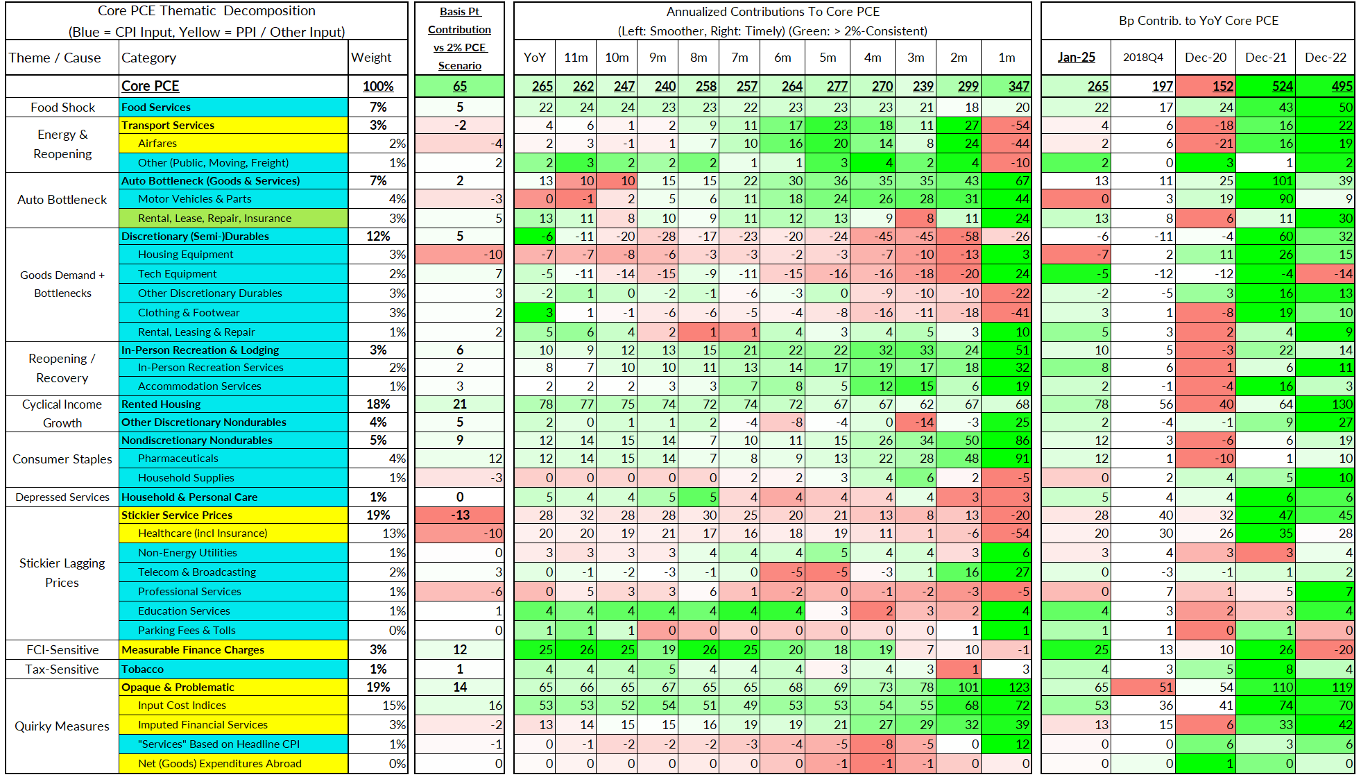 The final heatmap below gives you a sense of the overshoot on shorter annualized run-rates. January monthly annualized Core PCE ran at a 3.47% annualized pace, a 147 basis point overshoot vs 2% target inflation.