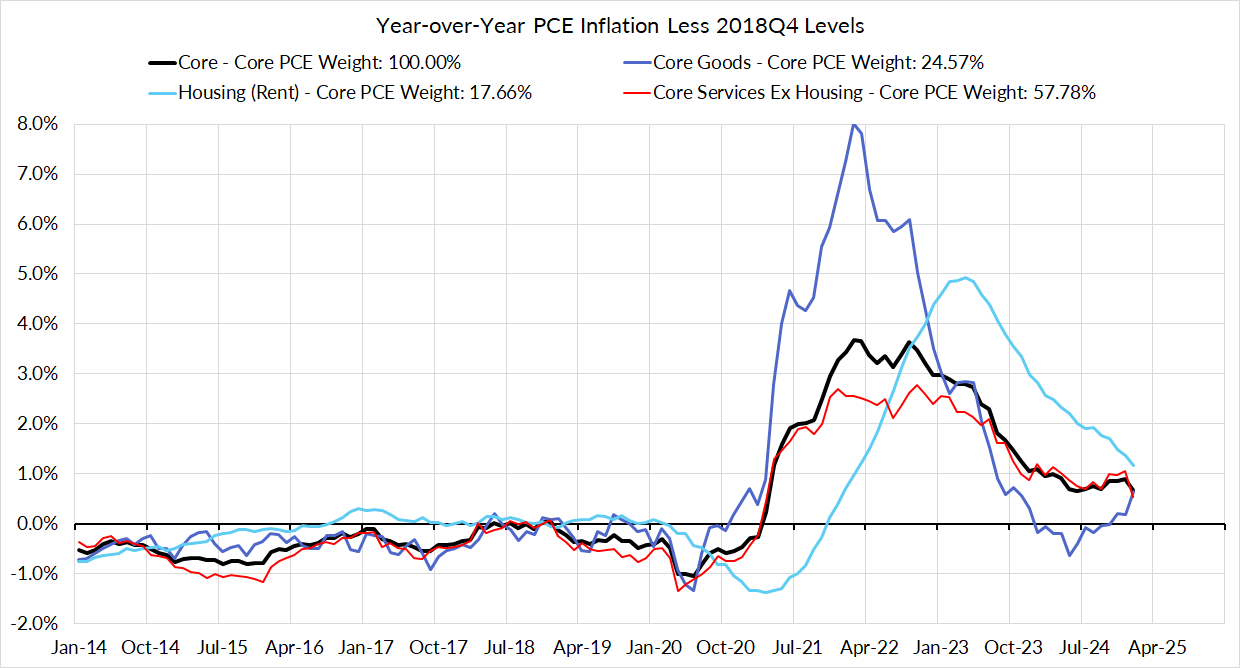 These lagged quirks add up to at least 49 basis points of overshoot that should roll off over time. That alone would not get us all the way back to 2% PCE inflation, but would put us firmly in the margin of error.