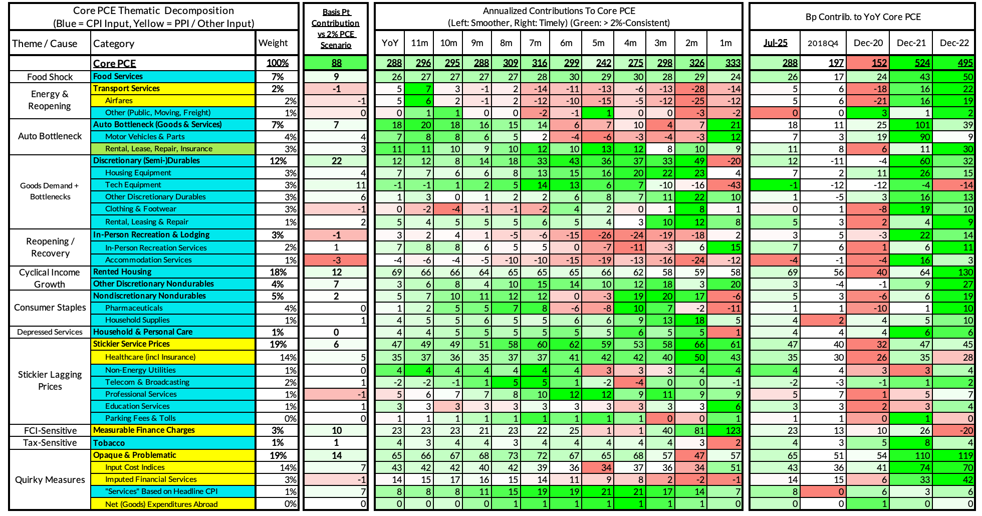 The final heatmap below gives you a sense of the overshoot on shorter annualized run-rates. July monthly annualized Core PCE ran at a 3.33% annualized pace, a 133 basis point overshoot vs 2% target inflation.