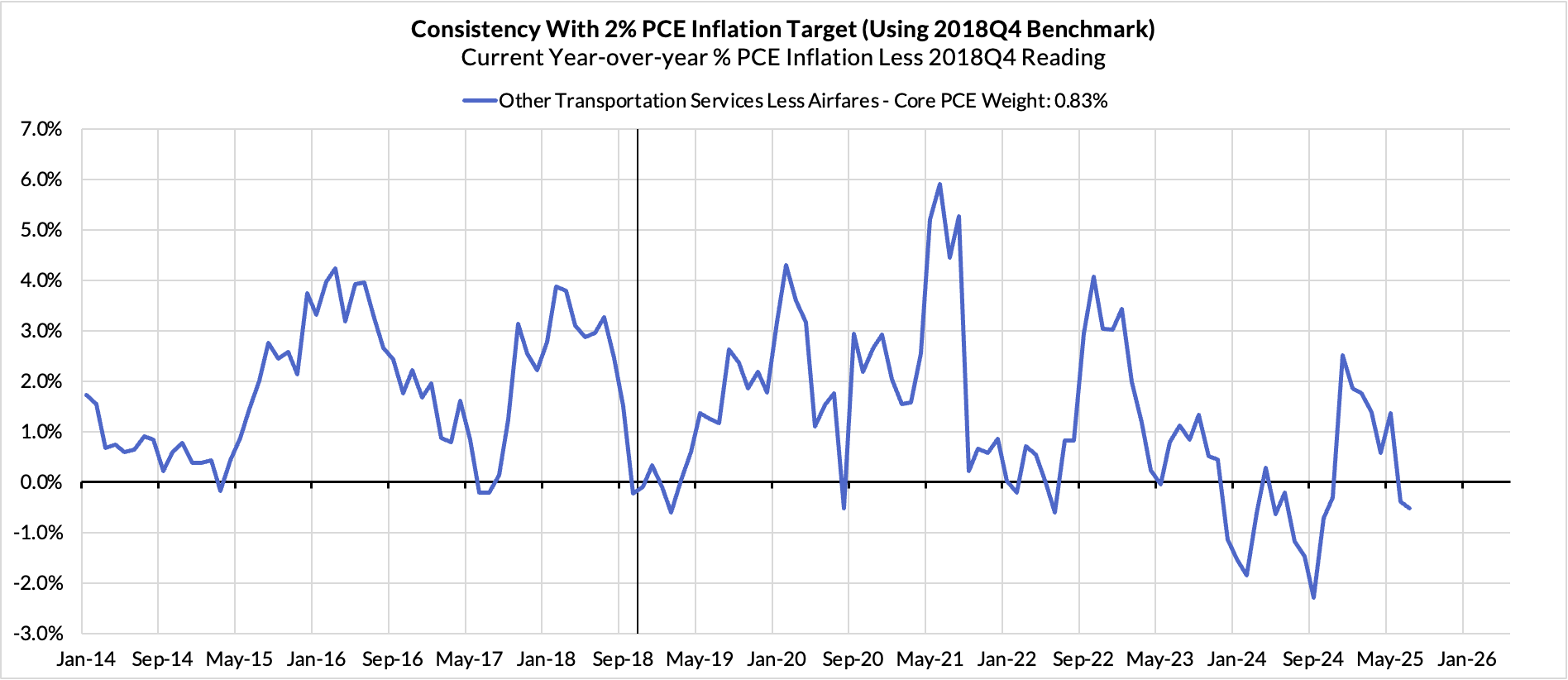 - Discretionary non-automobile goods + adjacent services are adding 29 basis points.