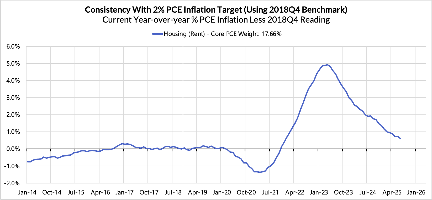 - Catch-up rent CPI inflation in response to the 2021-22 surge in household formation (a byproduct of rapidly recovering job growth) and market rents accounts for just 12 basis points to the 87 basis point Core PCE overshoot.