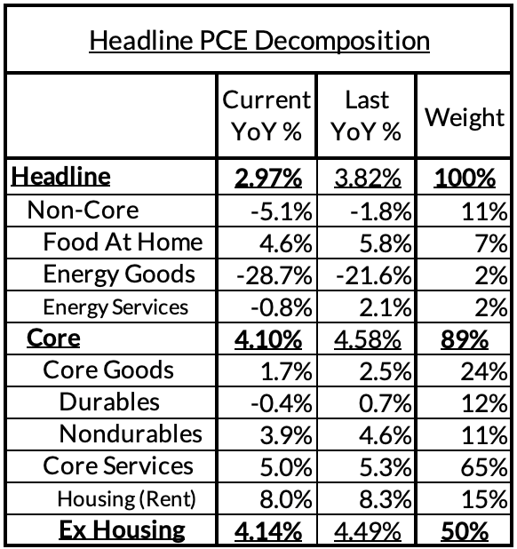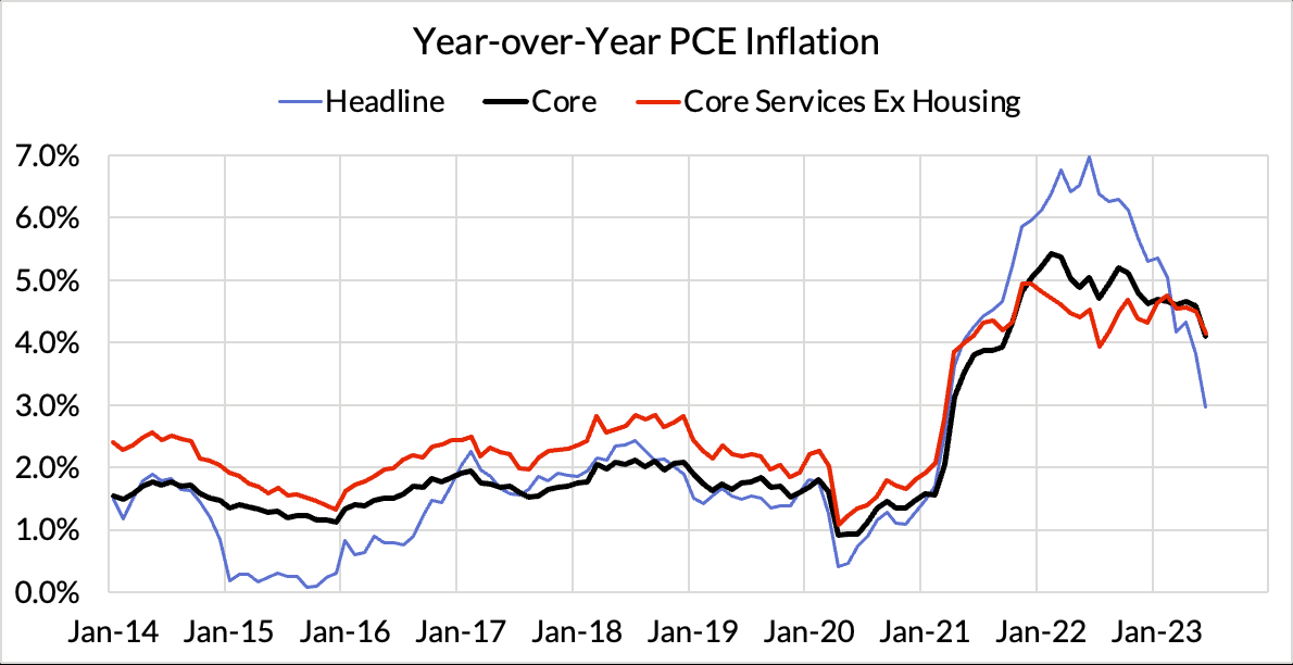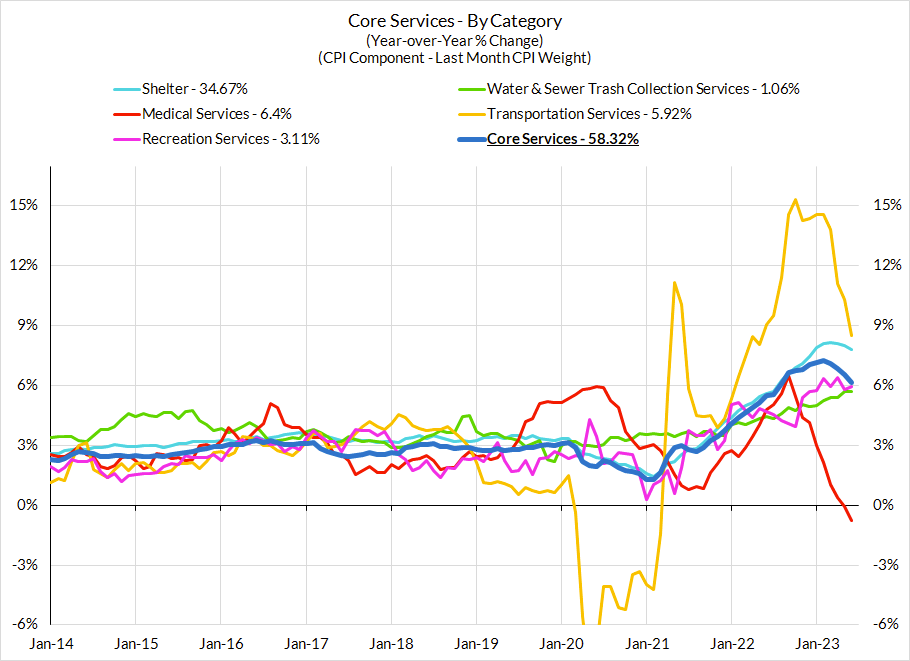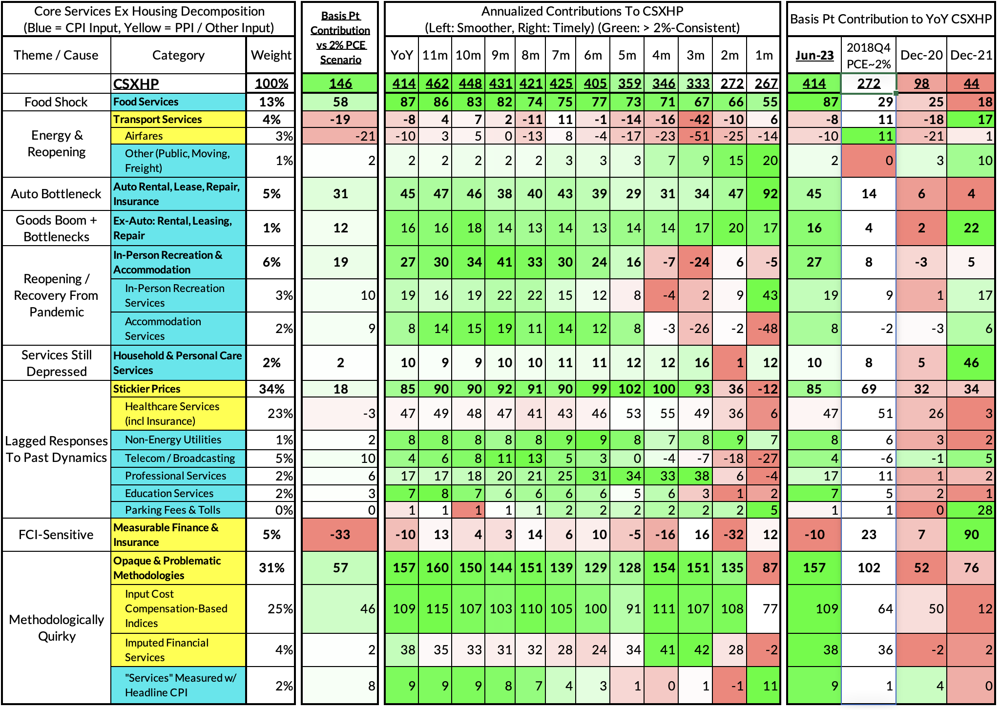 The June growth rate in "Core Services Ex Housing PCE" was 4.14% year-over-year, a 146 basis point overshoot versus the 2.68% run rate that coincided with ~2% headline and core PCE.