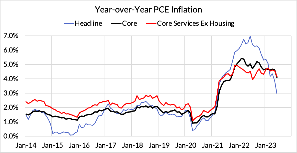 Summary: As we've noted now for the previous two CPI recaps, the details continued to look encouraging and signal a deeper inflection point in the inflation data. The key inputs to PCE (note: NOT airfares) are showing deceleration and these inputs tend to have forward-looking signal. We will see tomorrow what news June PPI + revisions bring; it's very possible the Fed's internal nowcasts for June Core PCE at the July FOMC meeting signal what we are tracking: that Core PCE is set to underperform FOMC members' projections in both June and March. Core Services Ex Housing PCE could show even sharper deceleration in June than it did in May (though best to wait for PPI before getting too far ahead of ourselves). Today's information puts far less pressure on the Fed to deliver a second additional hike after July. And if PPI inputs to PCE come in very weak tomorrow, a July hike will look more like hawkish dogma than data-dependence.