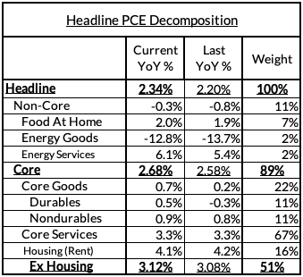 Our final nowcasts fared notably better than the consensus yet again, despite initially getting wrongfooted first by a soft CPI and then a stronger PPI release. Our year-over-year Core PCE nowcast was too cool by 3 basis points (but still substantially closer than consensus) while our month-over-month Core PCE nowcast was too hot by 2 basis points.