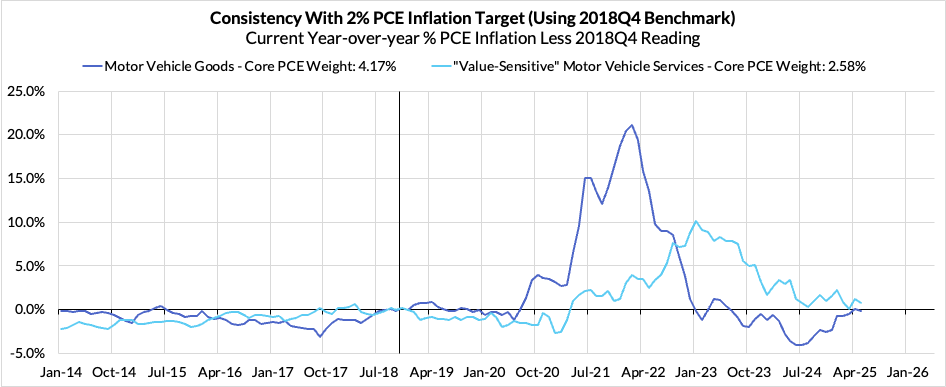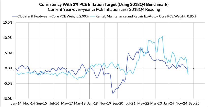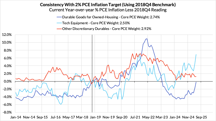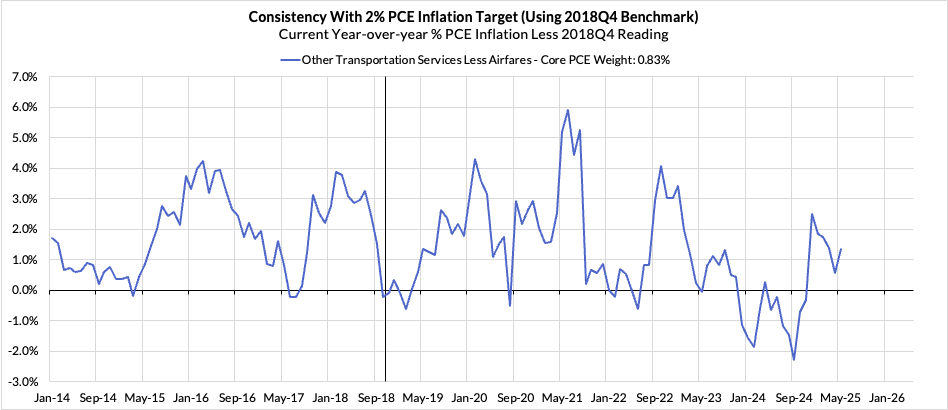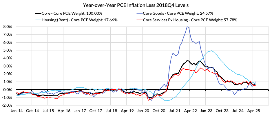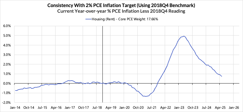 Right now Core PCE (PCE less food products and energy) is running at a 2.68% year-over-year pace as of May, 68 basis points above the Fed's 2% inflation target for PCE, 16 basis points higher than what was observed a month ago. That projected overshoot is still driven by catch-up rent CPI inflation in response to the surge in household formation (a byproduct of rapidly recovering job growth) and market rents in 2021-22. Rent is on track to contribute 14 basis points to the 68 basis point Core PCE overshoot.