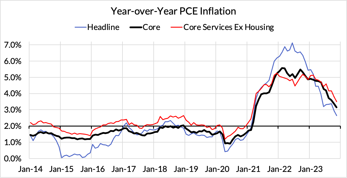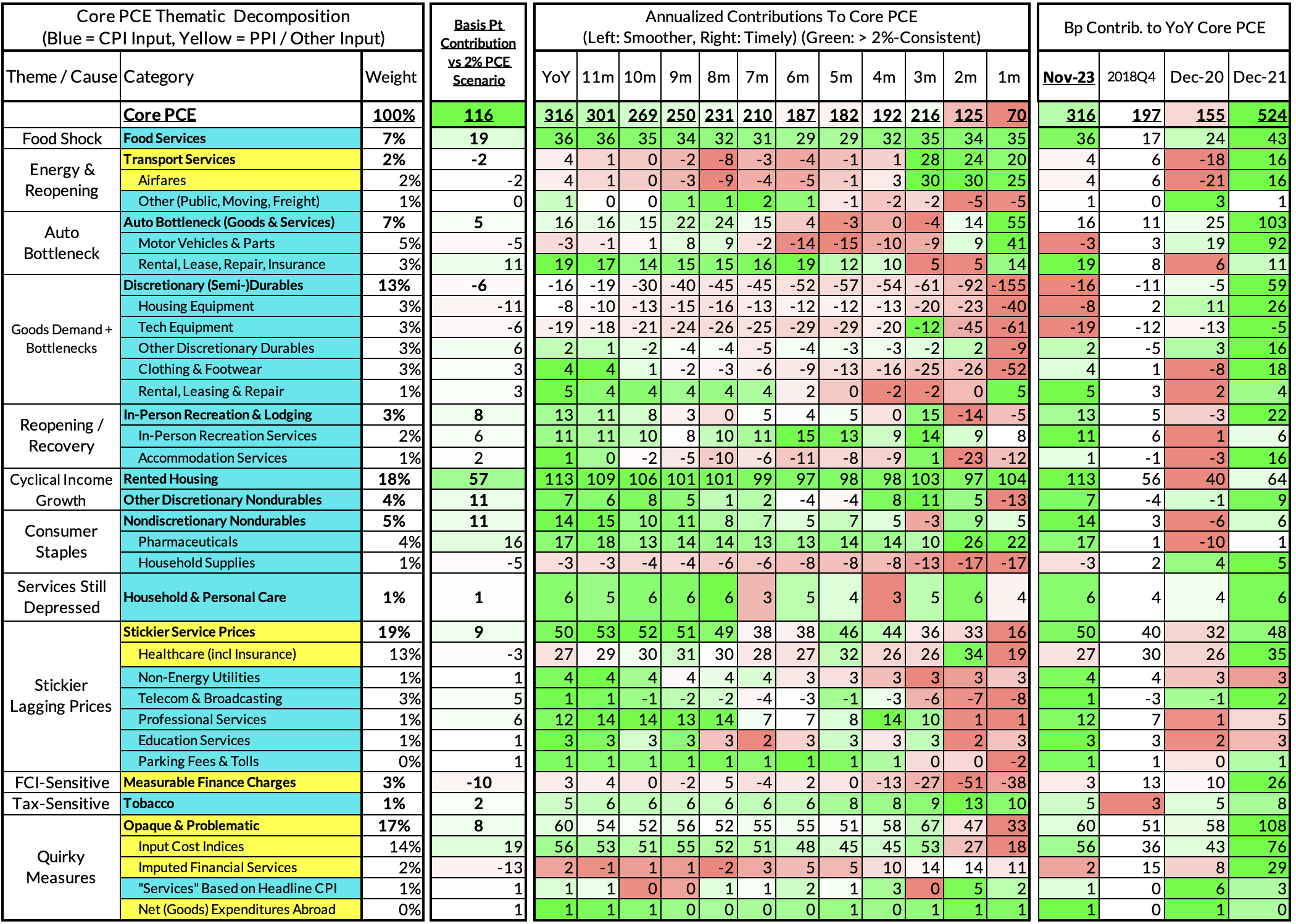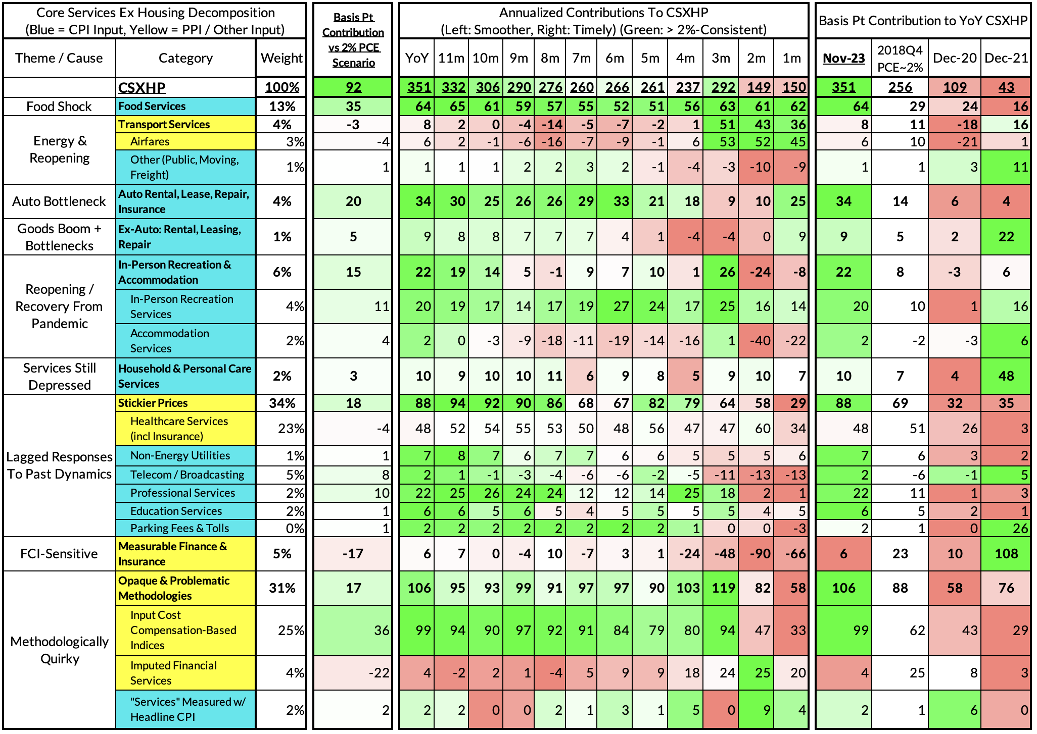 The November growth rate in "Core Services Ex Housing" ('supercore') PCE ran at 3.51% year-over-year, a 92 basis point overshoot versus the 2.59% run rate that coincided with ~2% headline and core PCE.