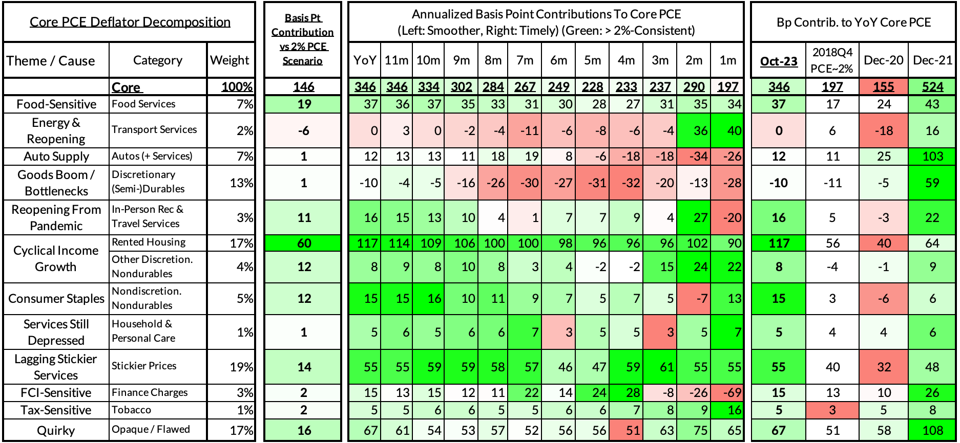 The October growth rate in "Core Services Ex Housing" ('supercore') PCE ran at 3.93% year-over-year, a 179 basis point overshoot versus the 2.56% run rate that coincided with ~2% headline and core PCE.