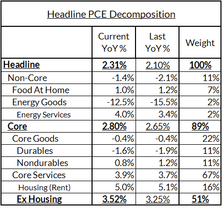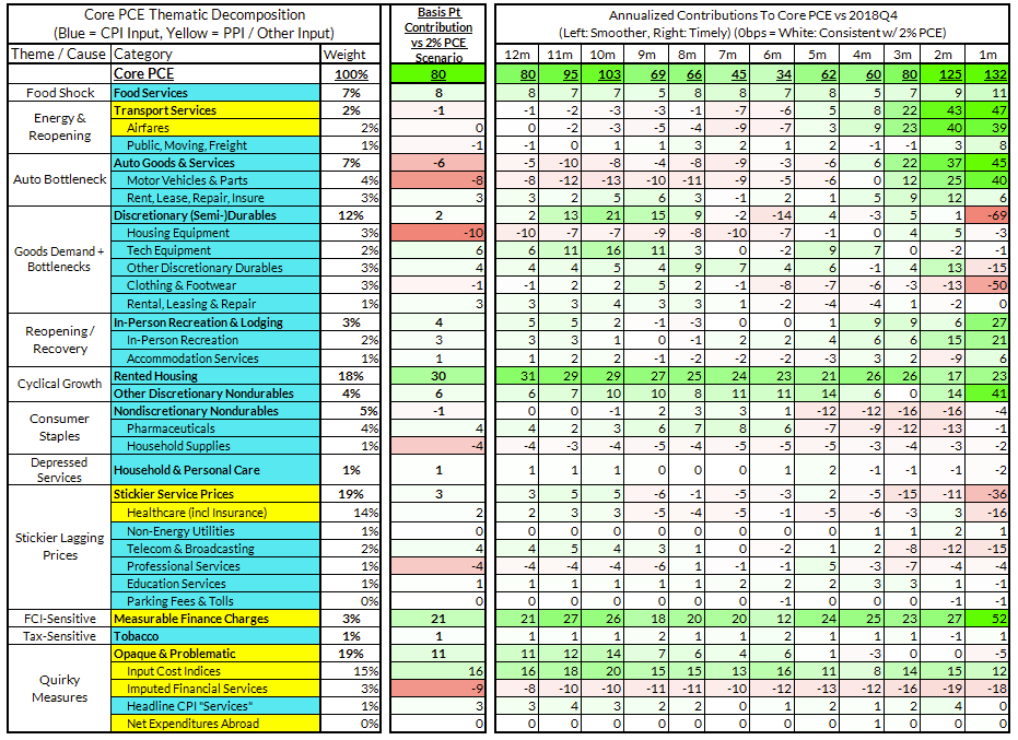 Some oddball segments have offsetting effects (measured financial service charges now likely adding 21 basis points, while contributions from input cost indices are adding 16 basis points to Core PCE vs 2%-consistent outcomes).