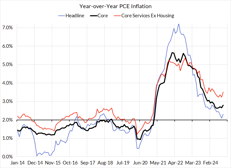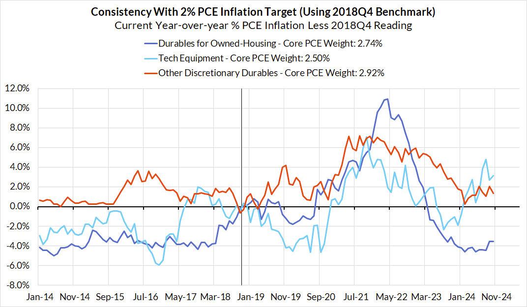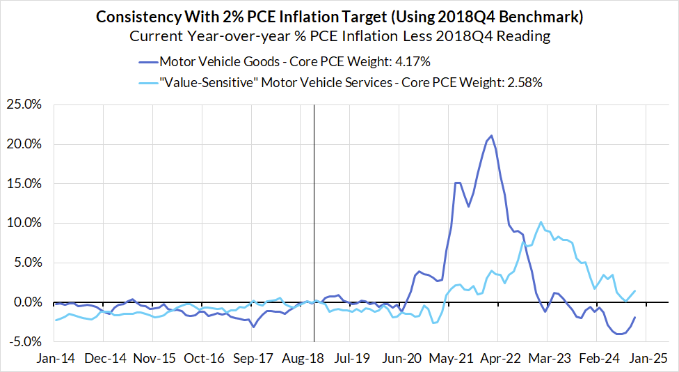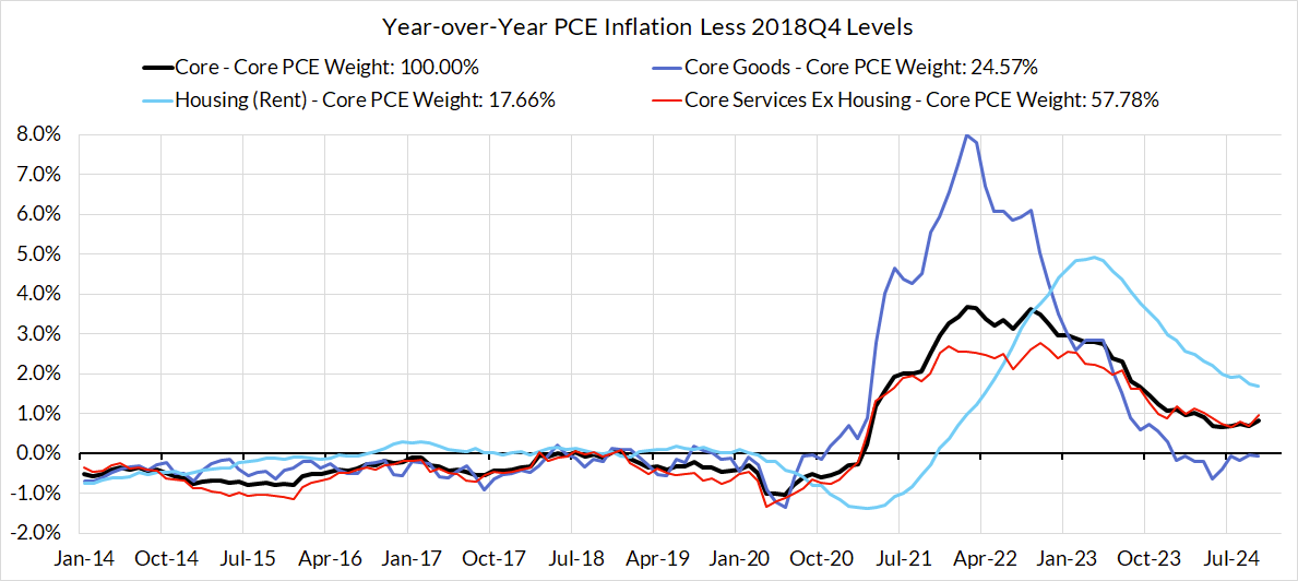 Core PCE is now running at a 2.80% year-over-year pace, 80 basis points above the Fed's target. There are three key contributors to the overshoot (67 out of 80 basis points):