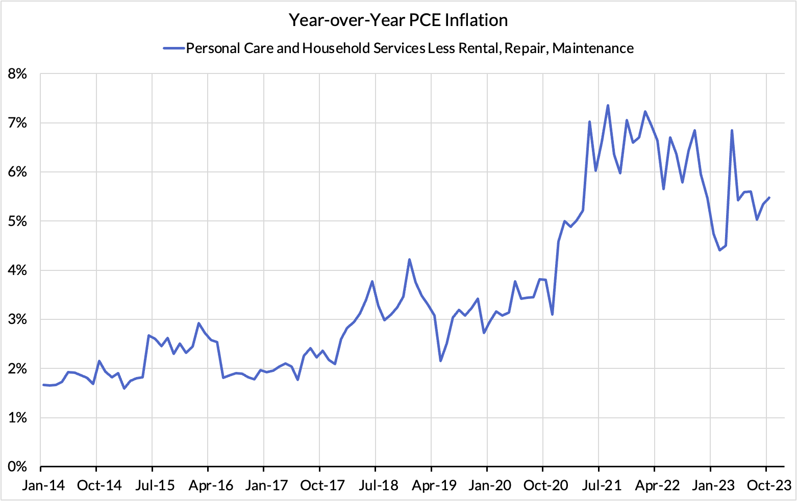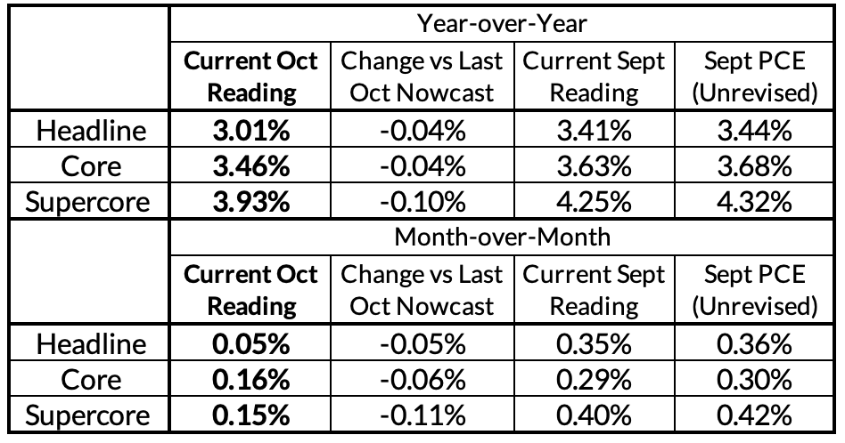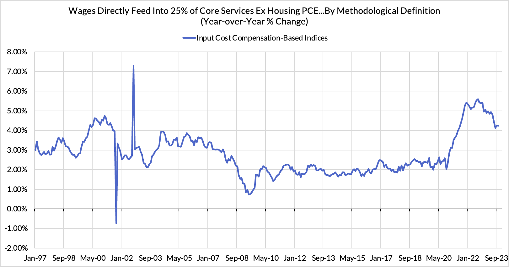 The October growth rate in "Core Services Ex Housing" ('supercore') PCE ran at 3.93% year-over-year, a 179 basis point overshoot versus the 2.56% run rate that coincided with ~2% headline and core PCE.