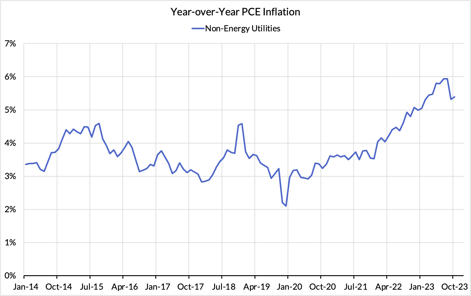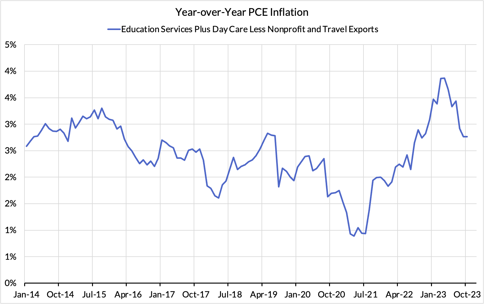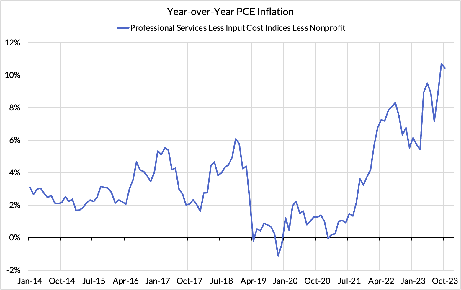 The October growth rate in "Core Services Ex Housing" ('supercore') PCE ran at 3.93% year-over-year, a 179 basis point overshoot versus the 2.56% run rate that coincided with ~2% headline and core PCE.