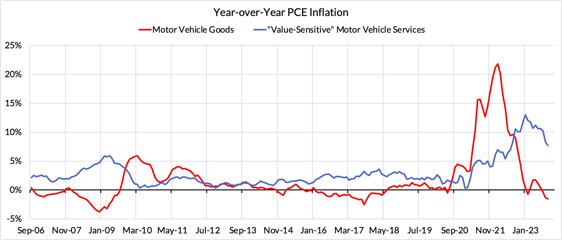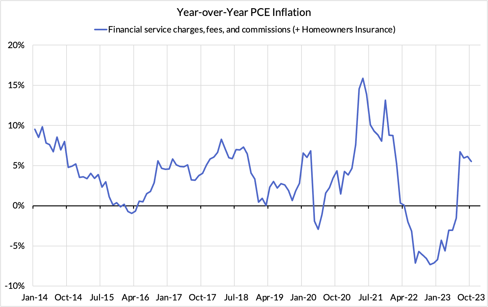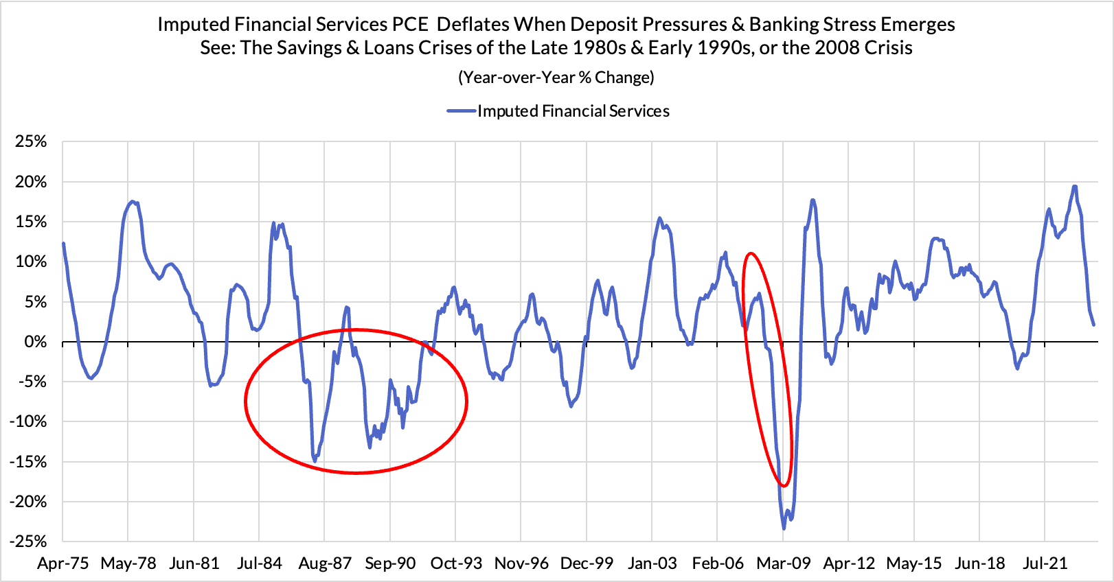 - Some oddball segments have offsetting effects (measured financial service charges now likely added 2 basis points, while contributions from input cost indices and imputed financial services likely added 13 basis points to Core PCE vs 2%-consistent outcomes).