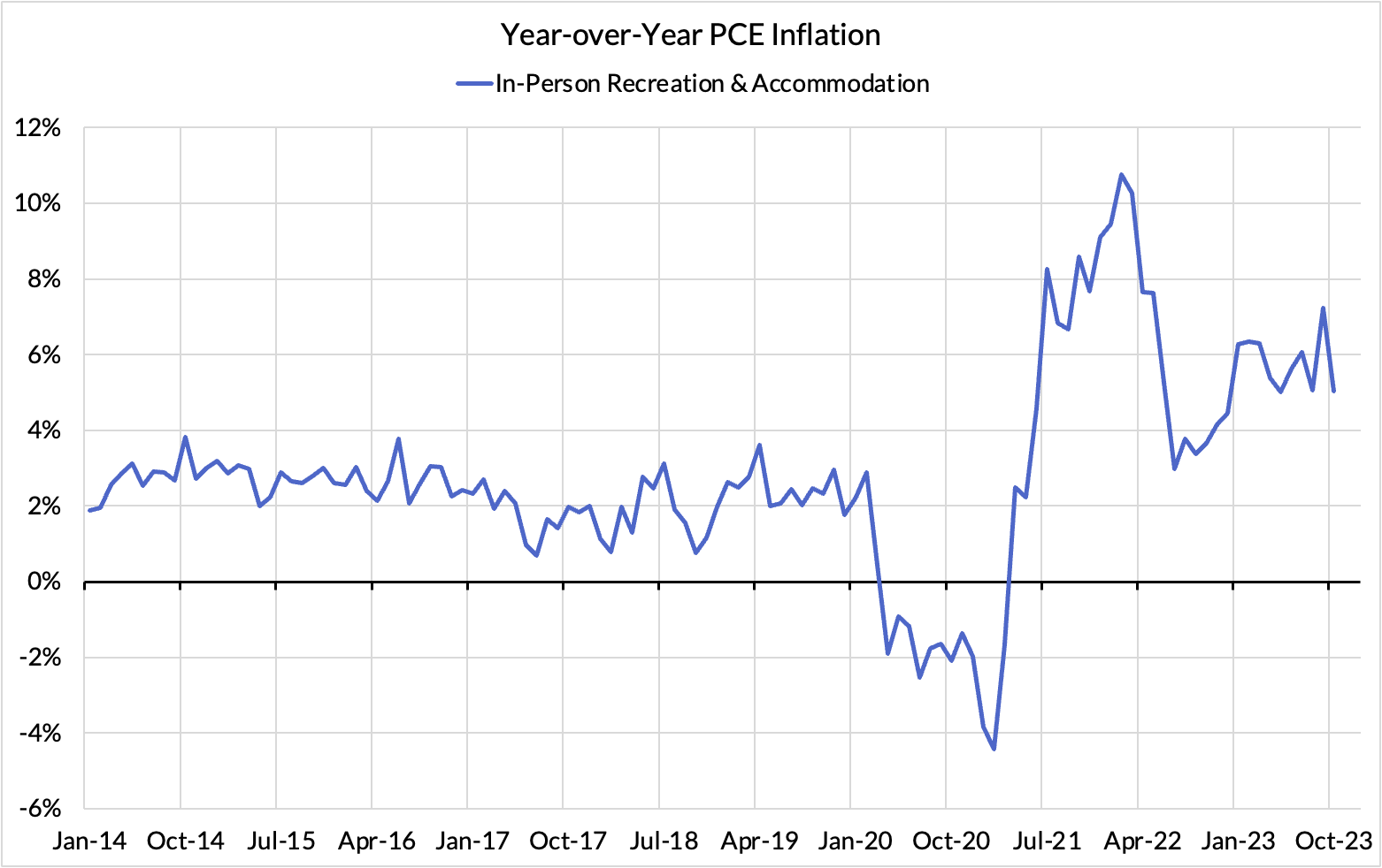 - Some more demand-driven (in-person recreation and travel services likely added 11 basis points to the overshoot)