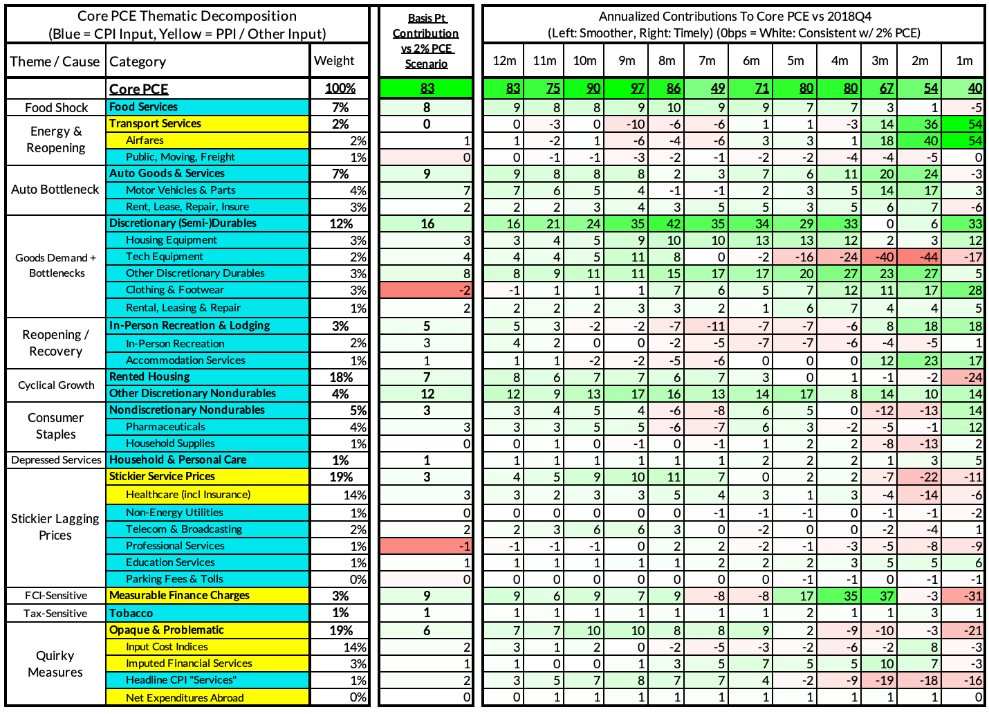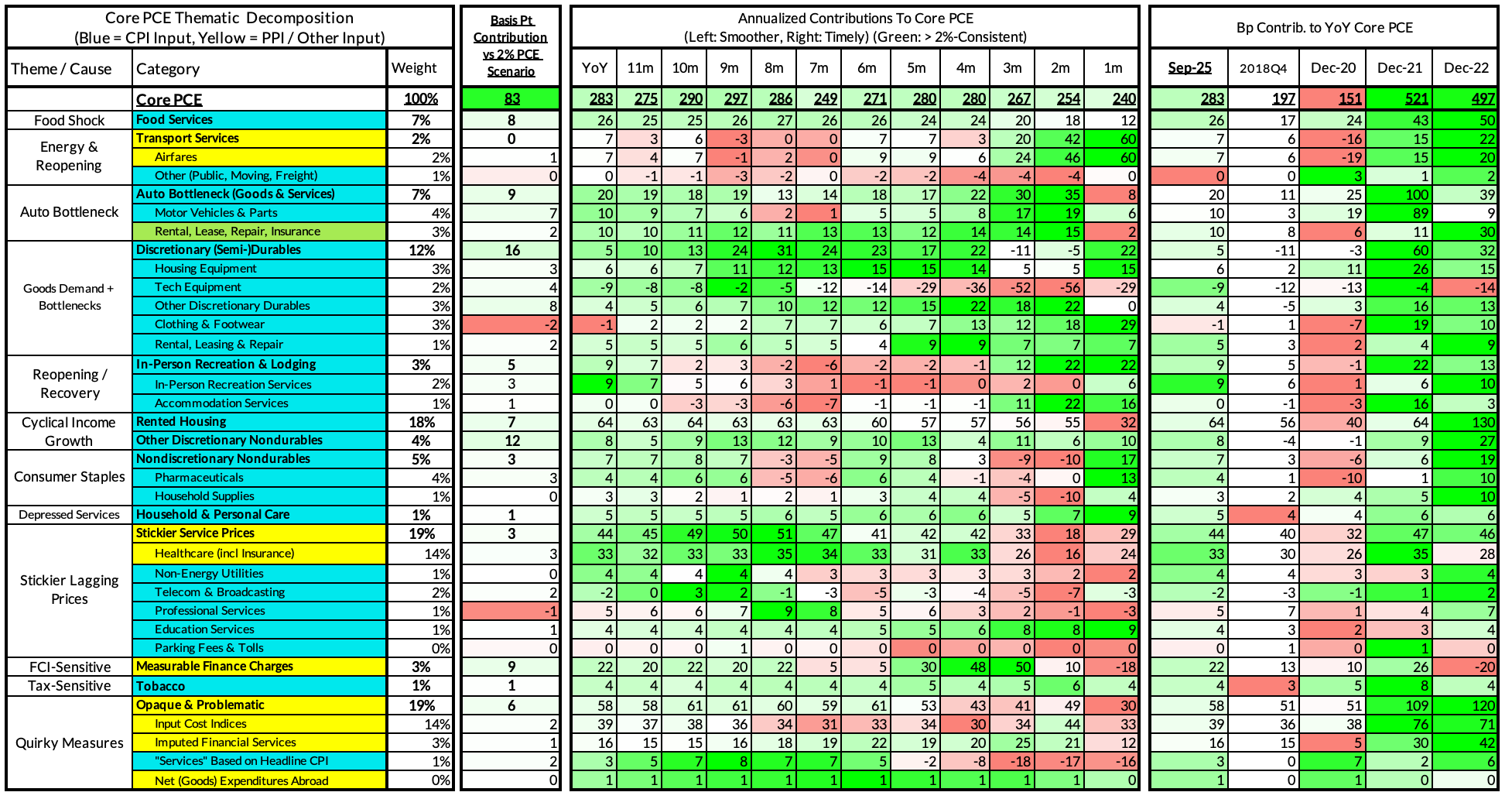 The final heatmap below gives you a sense of the overshoot on shorter annualized run-rates. September monthly annualized Core PCE ran at a 2.40% annualized pace, a 40 basis point overshoot vs 2% target inflation.