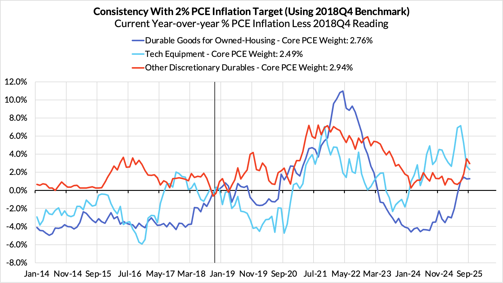 - Catch-up rent CPI inflation in response to the 2021-22 surge in household formation (a byproduct of rapidly recovering job growth) and market rents are likely to account for just 7 basis points to the 84 basis point Core PCE overshoot.