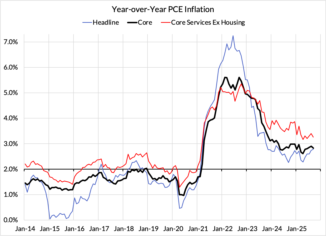 Right now Core PCE (PCE less food products and energy) is running at 2.83% year-over-year pace as of September, 83 basis points above the Fed's 2% inflation target for PCE.