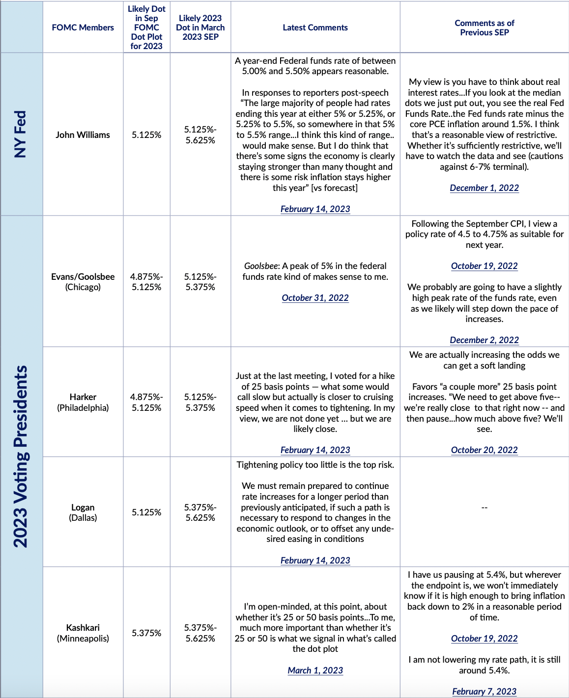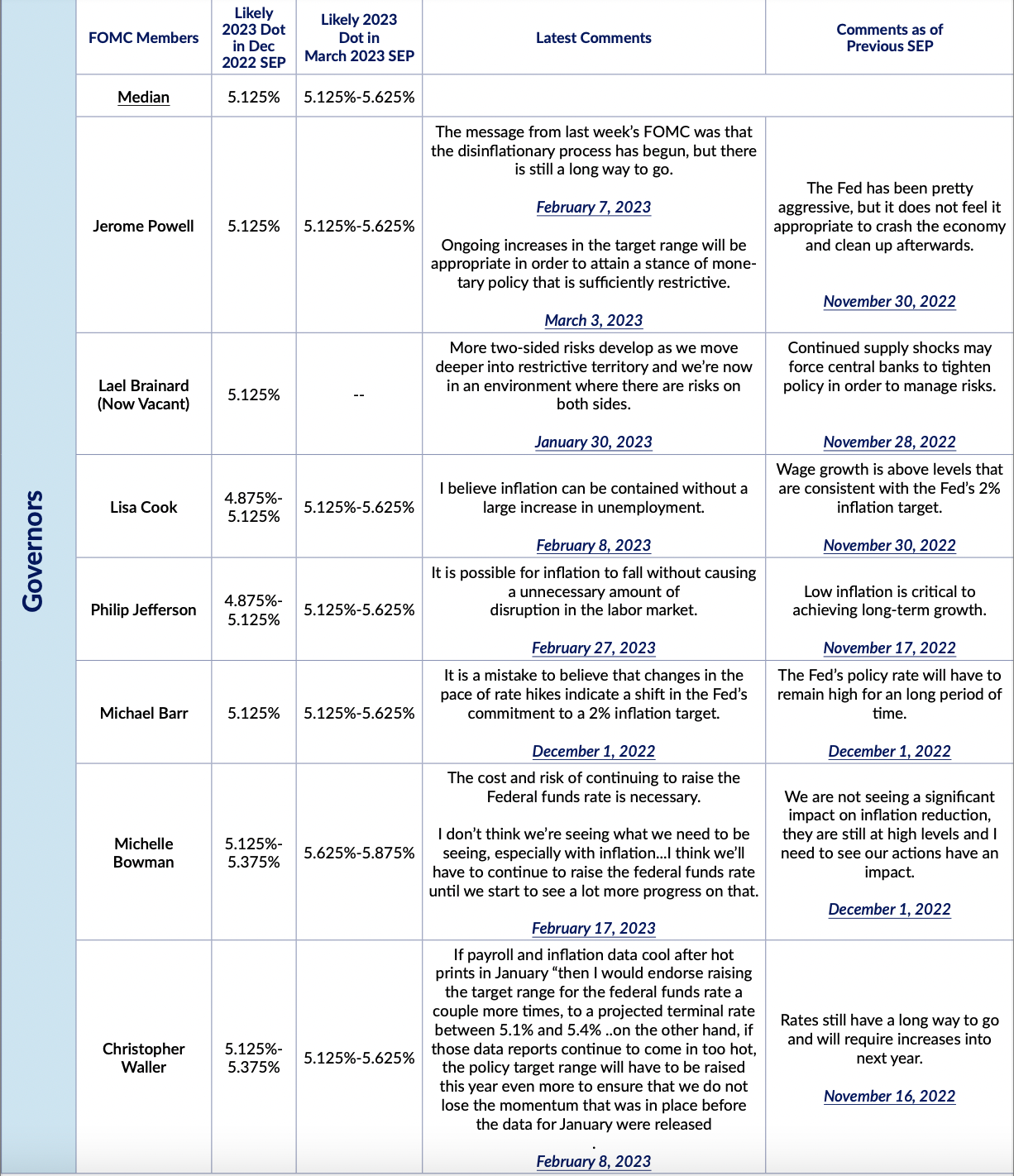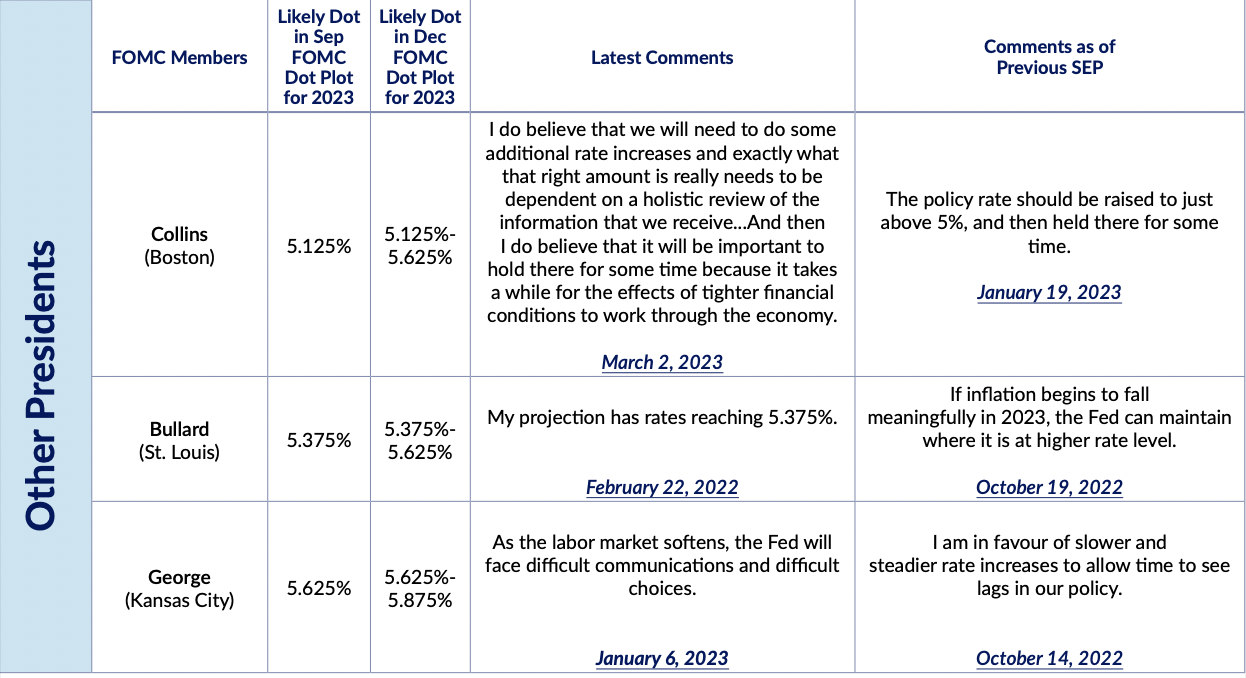 Balance of Risks vs Baseline: A hawkish scenario is more likely than a dovish one. A 50bp hike in March is a far (but plausible) reach, but a 50bp rise in 2023 year-end dot (to 5.625%) seems more firmly on the cards.