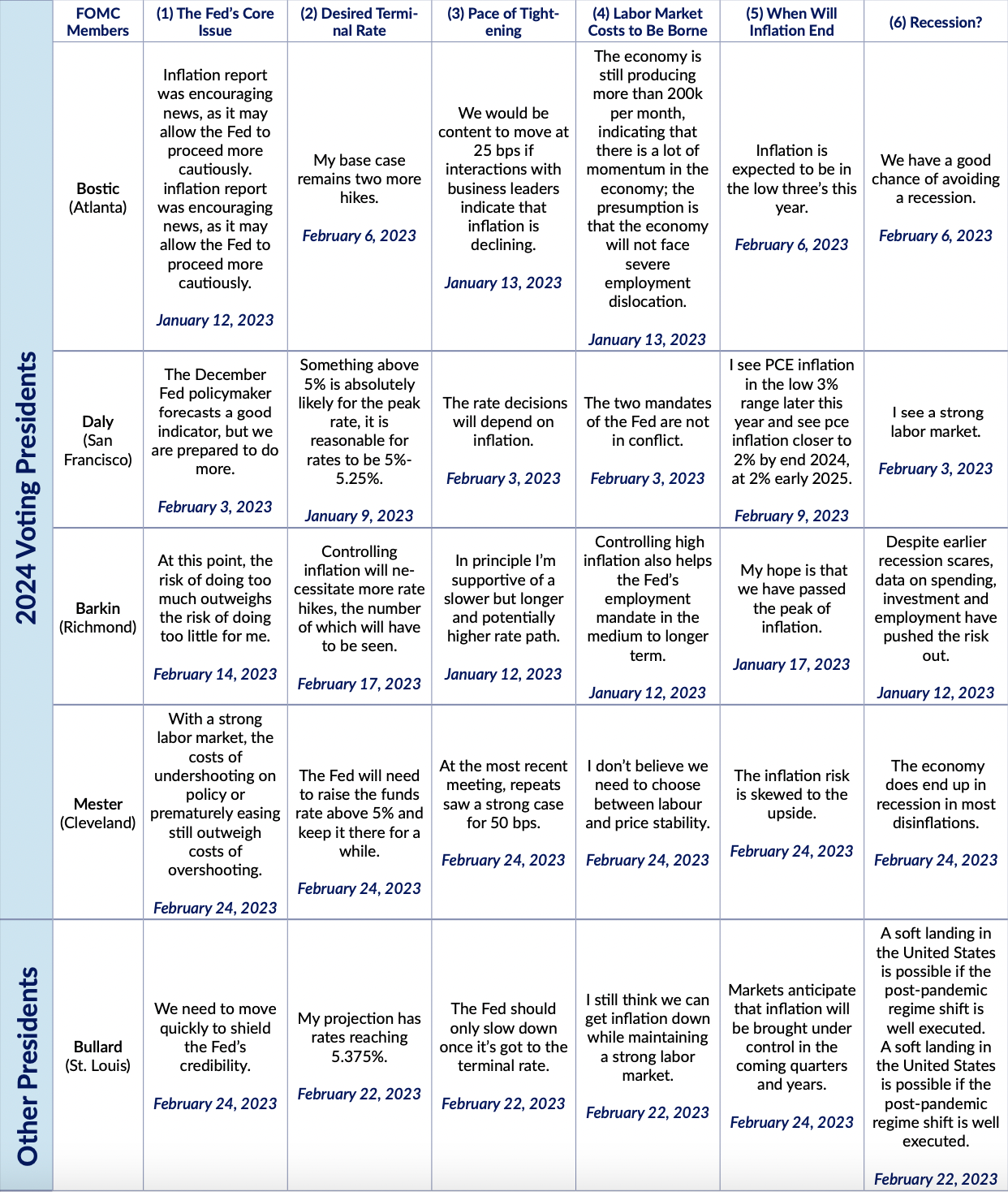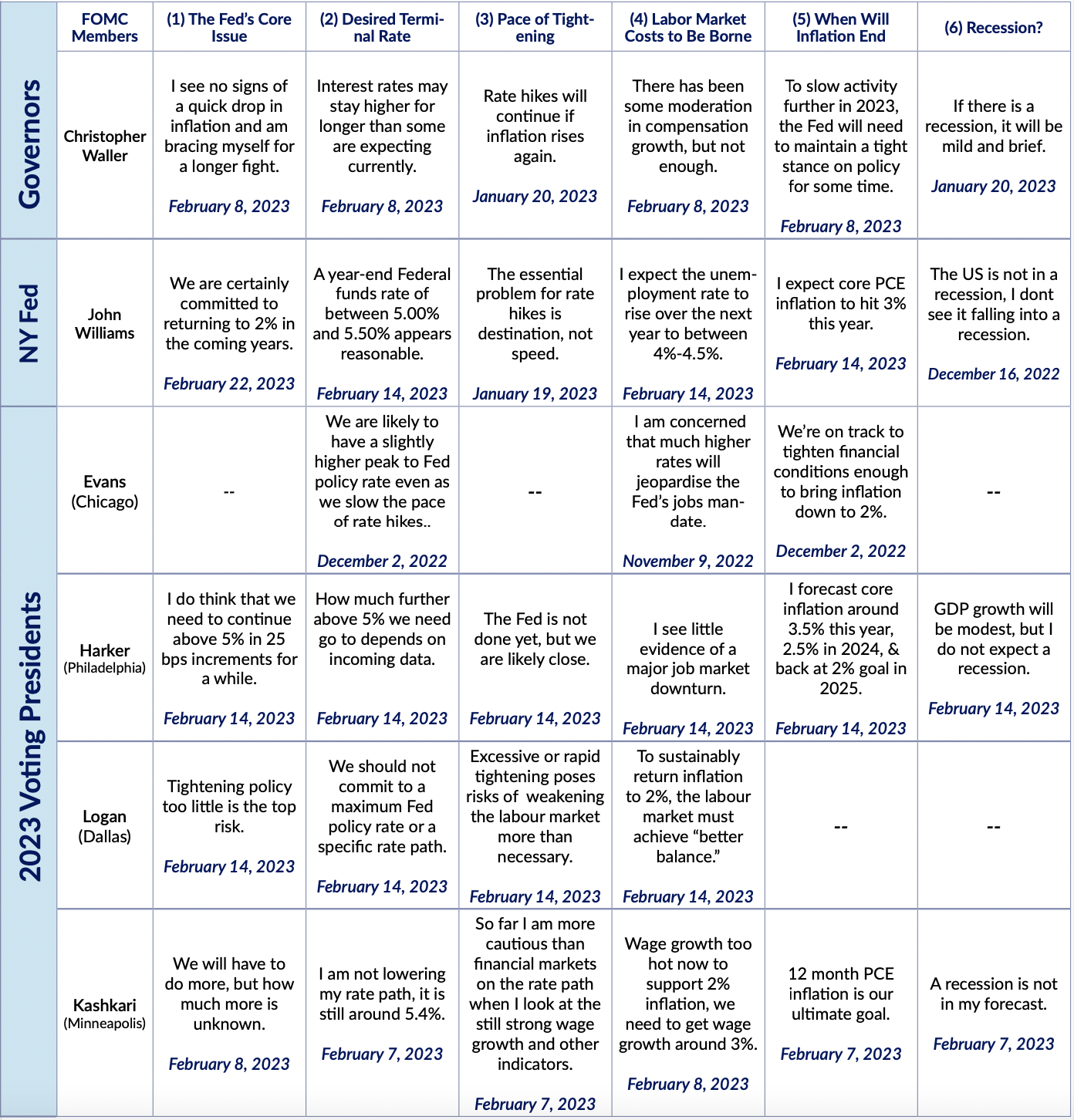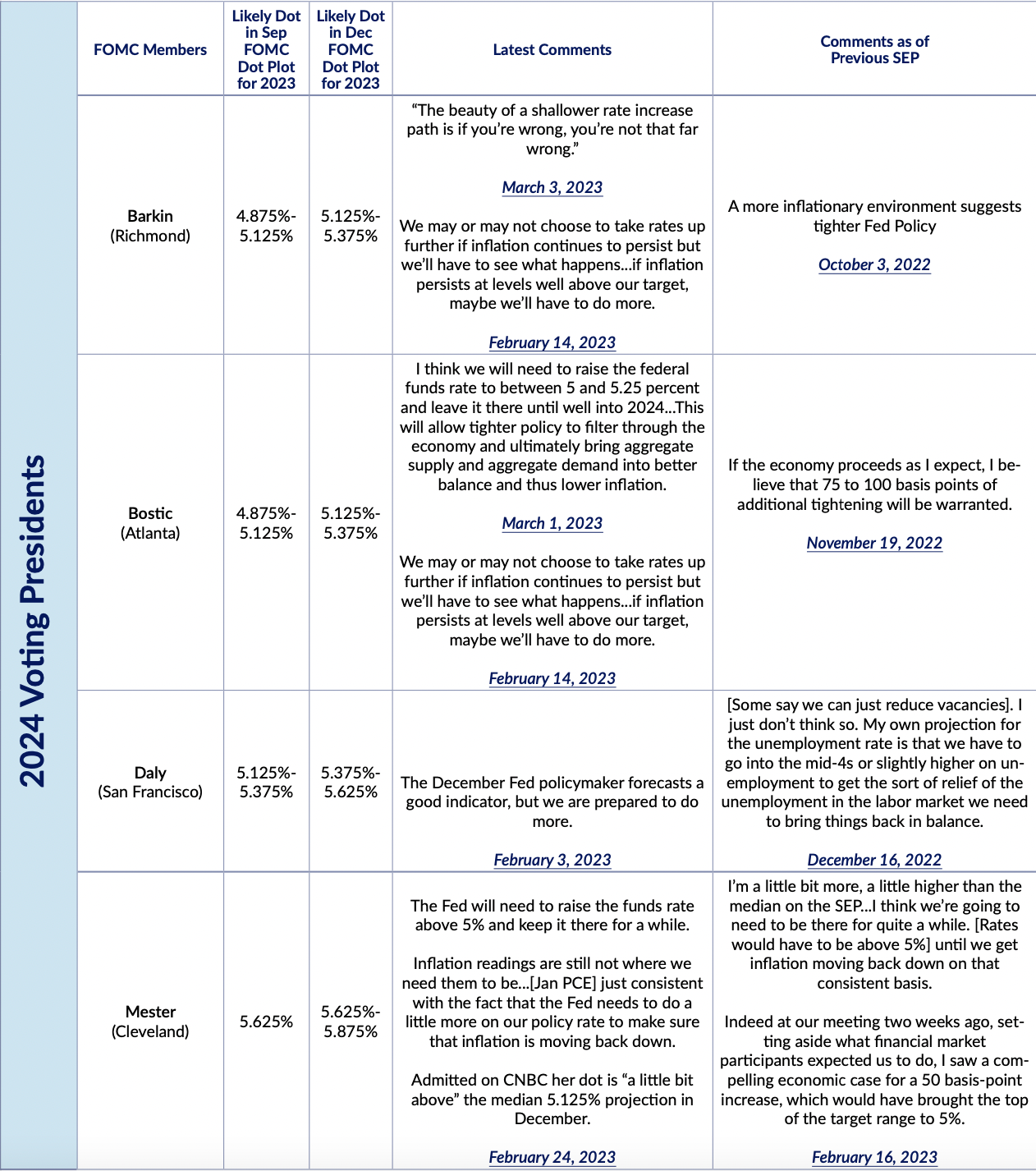 Balance of Risks vs Baseline: A hawkish scenario is more likely than a dovish one. A 50bp hike in March is a far (but plausible) reach, but a 50bp rise in 2023 year-end dot (to 5.625%) seems more firmly on the cards.