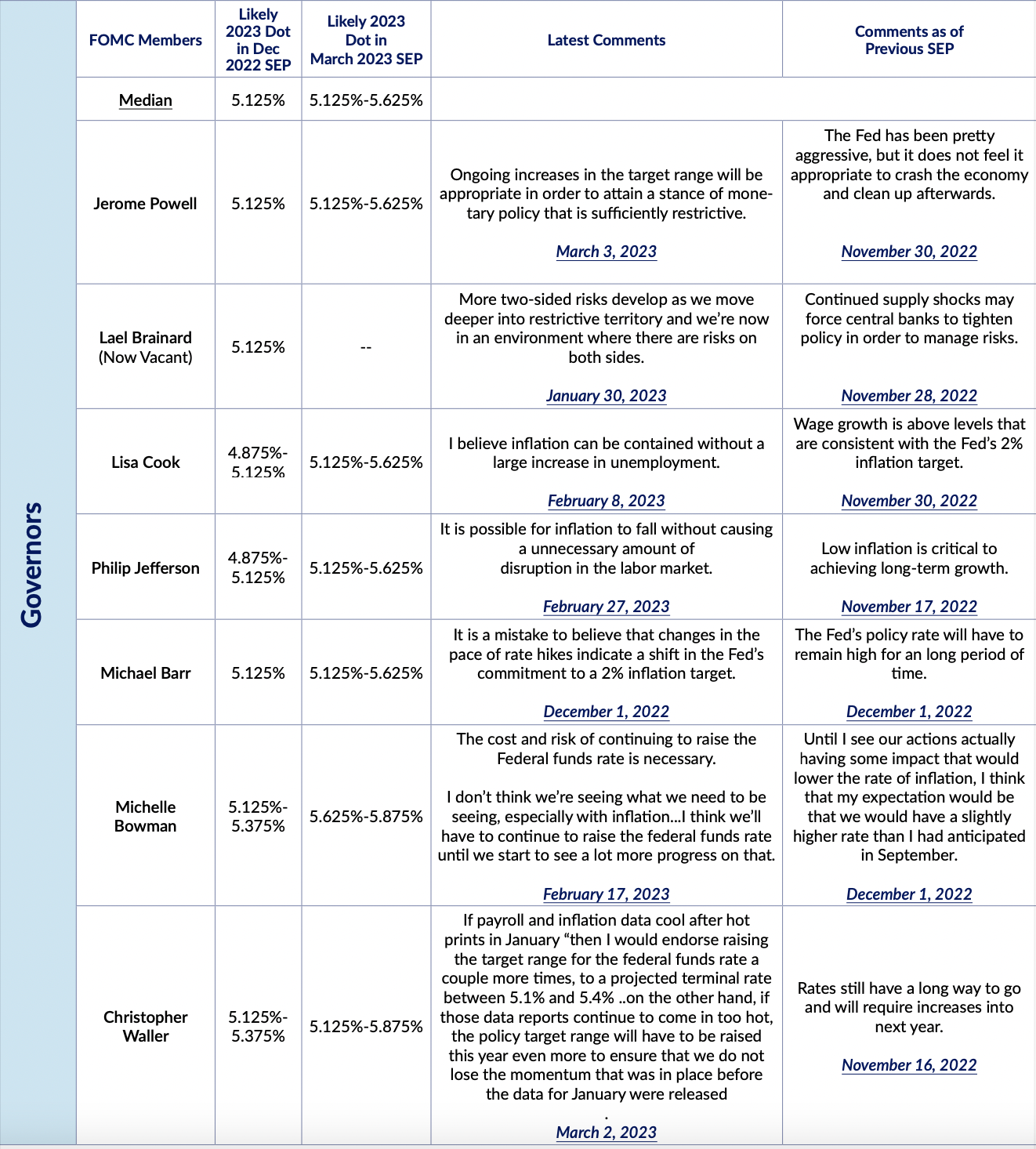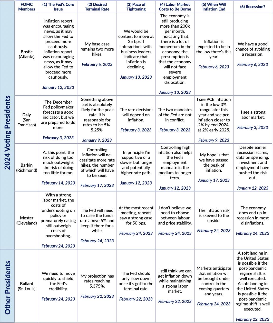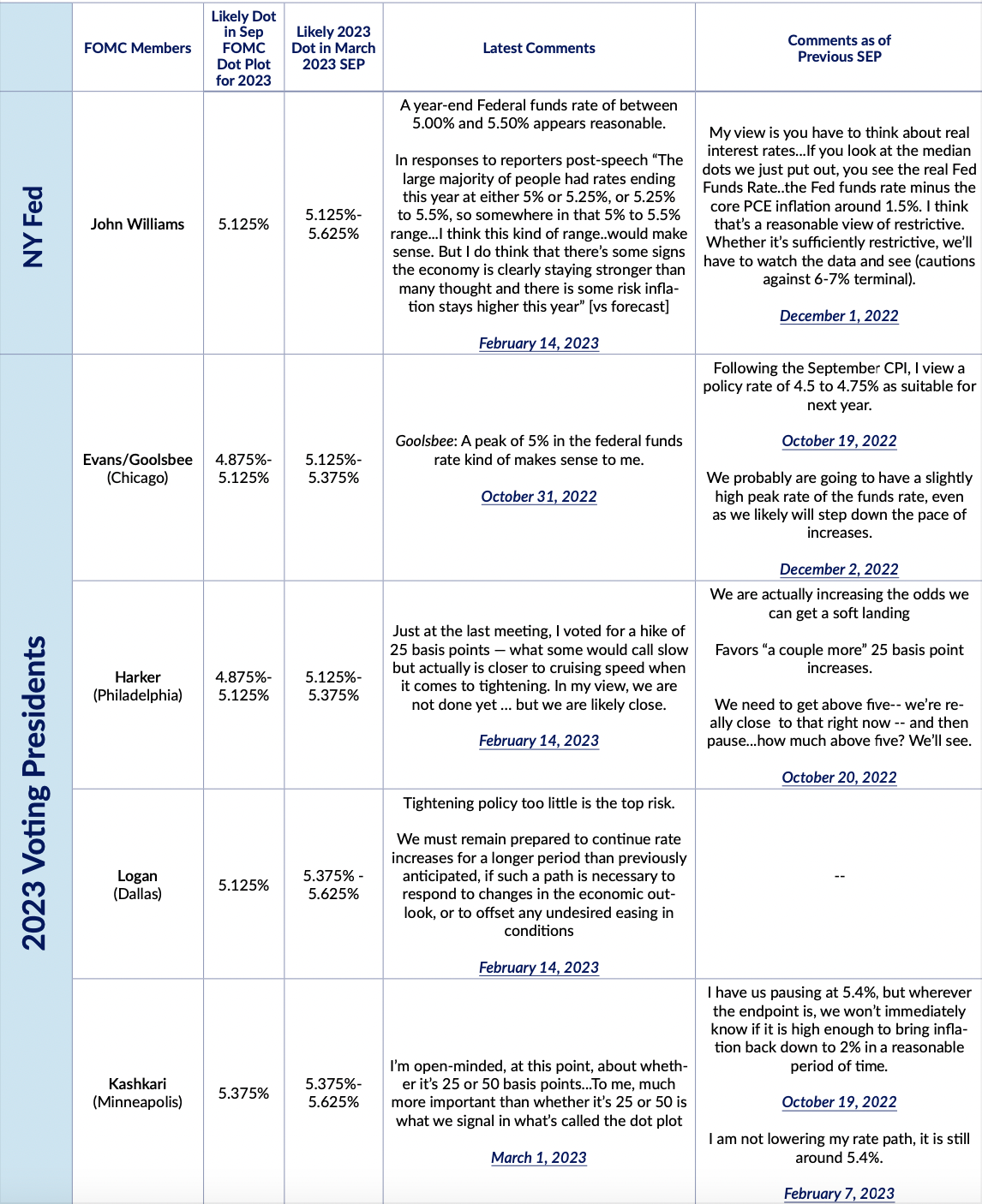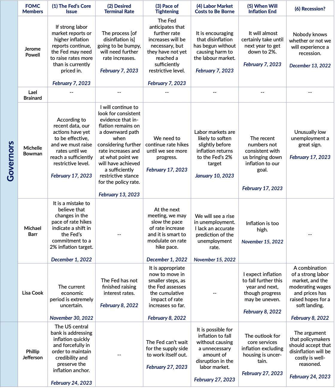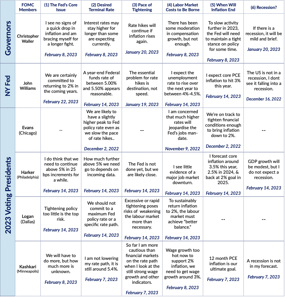 Fed Expectations Fedspeak Monitor: March 11th Alex Williams Mar 11, 2023 - 1 min read Citation links can be found in the PDF attached. FedspeakMonitor 031123 FedspeakMonitor_031123.pdf 404 KB download-circle Summary TableMonetary PolicyMulti-Dimensional The link has been copied!