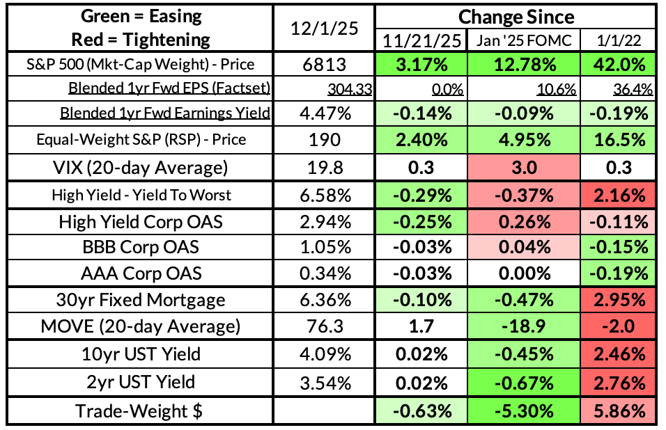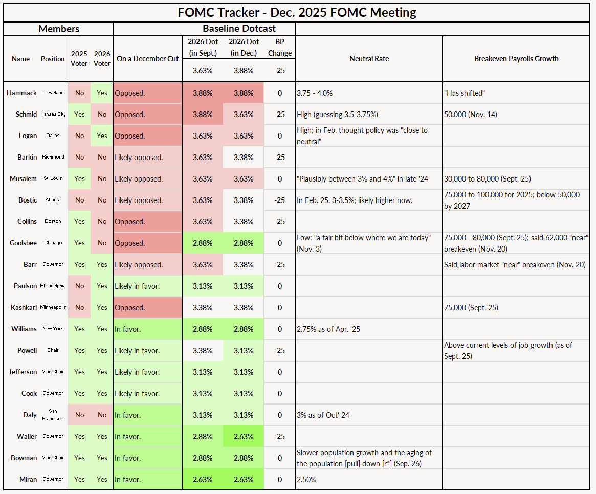 A December cut has been the base case ever since New York Federal Reserve Bank President John Williams hinted at one on November 21st, and looks to be a lock tomorrow. Despite the protestations of the regional bank presidents, enough key members of the Board of Governors, which carries disproportionate voting power, are in favor of moving.