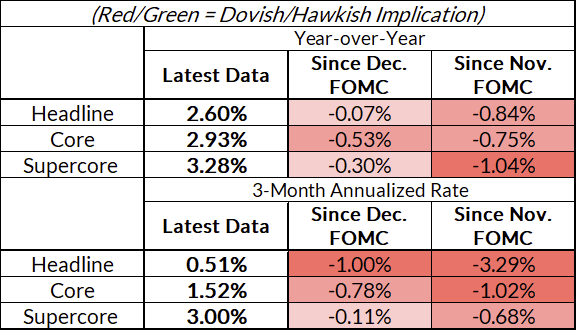 Note 1/28/24: This post has been updated to correct the color-coding on the change in PCE price inflation table.