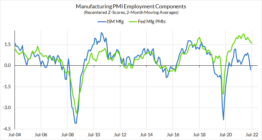 The downside risks to the growth outlook should be taken seriously, but they are primarily in the coming months and quarters, not in the recent past. 2022H1 saw historically strong gains in employment and industrial production, clearly at odds with the characterization of a recession. While a business cycle peak could have formed in May or June of 2022, it certainly did not materialize in December 2021.