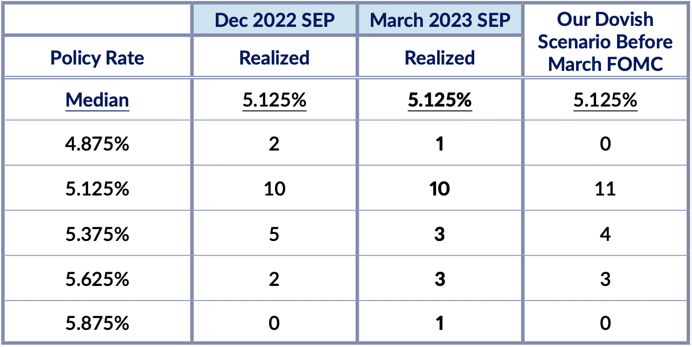 - Holding and hiking optionality in the statement. The May FOMC statement is likely to keep optionality open for a hike at the June FOMC meeting, without a hard signal that such a hike will be warranted. Because we have seen another bank failure recently, the Fed's 25 basis point hike will coincide with no strong guidance about the FOMC's plans for the June FOMC hike. The Fed wants the option to make May the last hike, and it also wants the option to hike in June.
