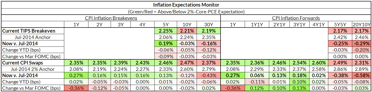 - A split FOMC will punt on key questions: As the previous two points make clear, there are starker differences emerging about near-term FOMC decisions. The Fed will need to come to a decision, but at least for now, that probably means no hard signals in the May FOMC statement about a June FOMC meeting policy bias/preference between hike or hold.