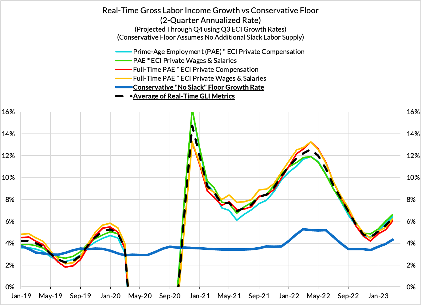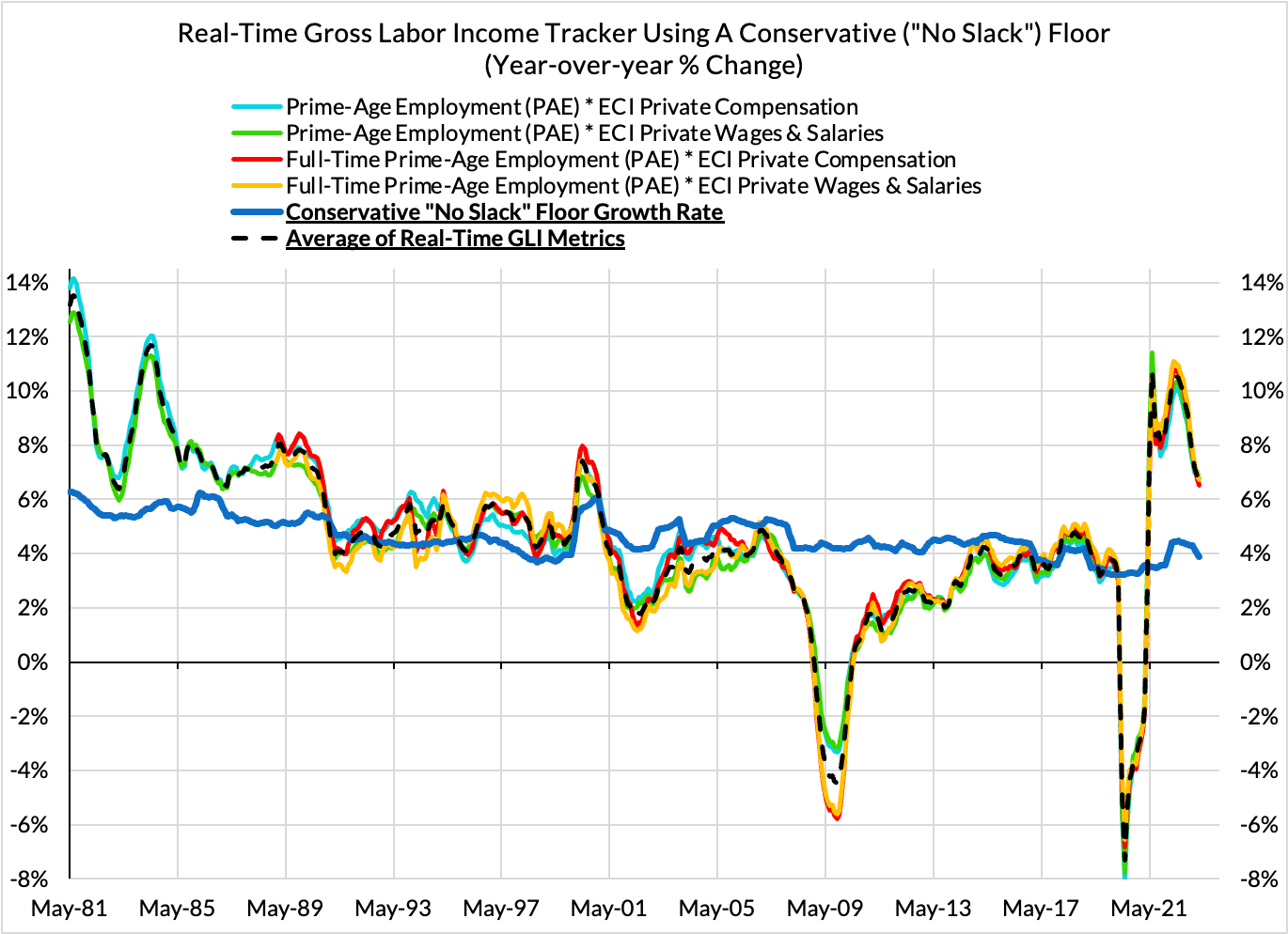 - In our framework, the Fed would be forward looking and not merely setting policy according to the baseline modal outlook. An unruly tightening of bank lending conditions and a snowballing of layoffs are both dynamics that are difficult to immediately reverse ('putting toothpaste back into the tube'). Even while upside risks to inflation have been identifiable throughout the past 18-24 months, the downside risks are only now growing more identifiable. Especially given the opacity of tracking how much bank lending conditions are tightening in real-time, capital market conditions cannot be the sole basis for gauging financial conditions in totality.