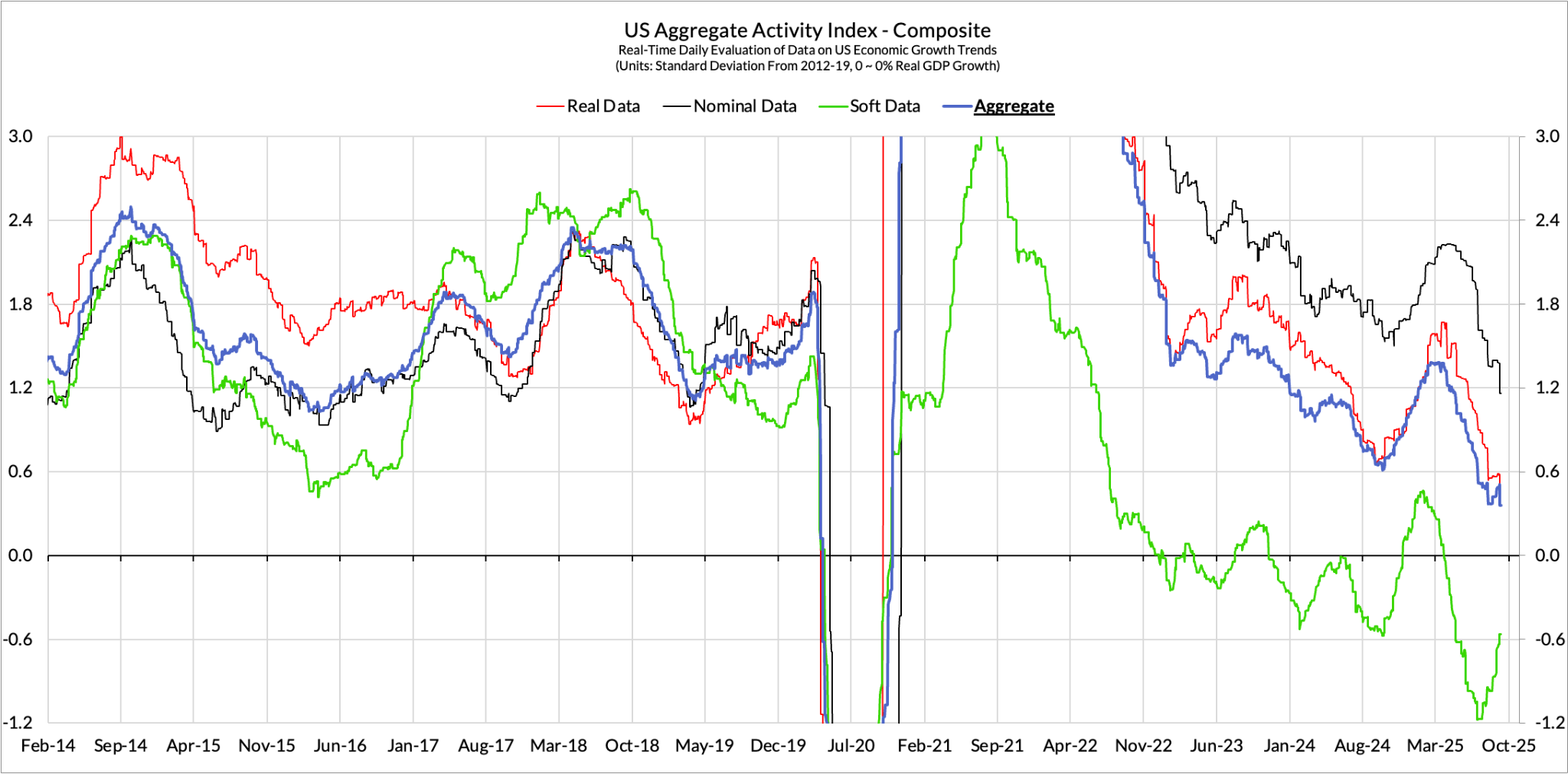 However, a broader view of the labor market suggests that the labor market risks aren’t imminent. Household survey measures—which may be more reliable right now—show health rates of participation and employment. Nominal income growth measures are still stable. Tariffs are beginning to show up in inflation, but less than anticipated; however, there do remain inflationary impulses to come from tarifs and electricity.