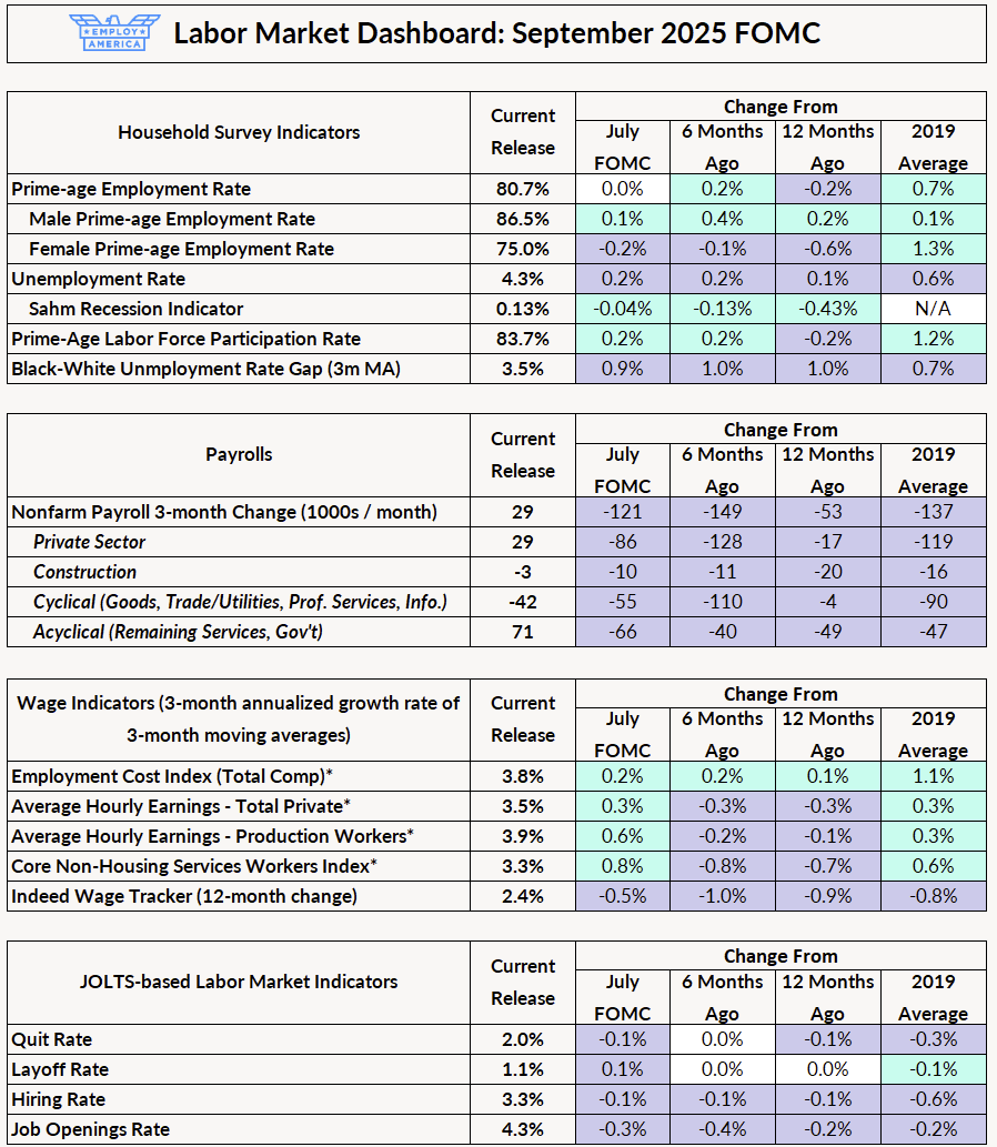 One final note: since the previous meeting, the Fed has released its 2025 Framework Update. While the new Framework does not contain all of the changes we would have liked to see, especially around supply dynamics and nominal income measures, we are heartened to see that the Framework kept many of the aspects of the previous Framework that emphasized the importance of Full Employment, despite those aspects receiving undue criticism for the Fed’s response (or lack thereof) to inflation in 2021.